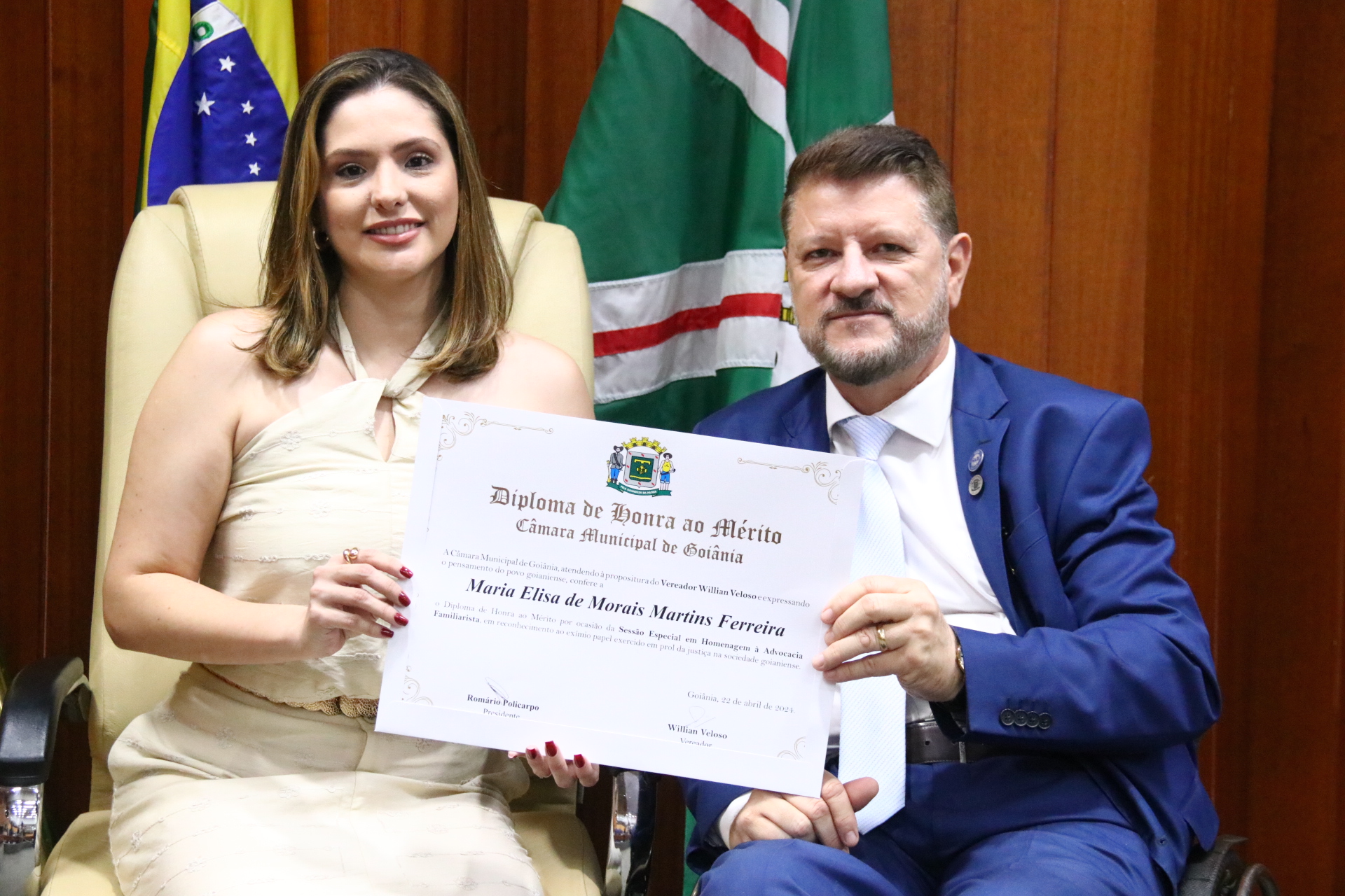 27/4/2024 - Sessão Solene: Entrega de Título de Cidadania Goianiense (Sra. Graziella Flávia Pereira Pires Neiva)