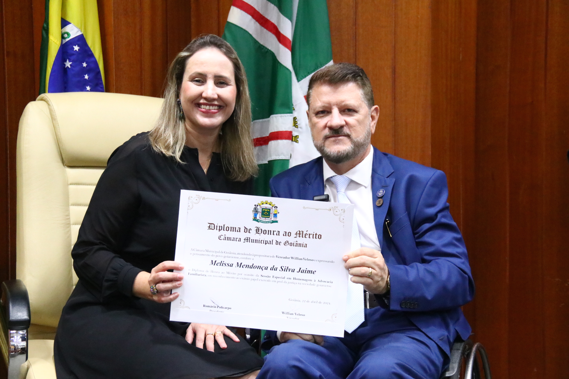 27/4/2024 - Sessão Solene: Entrega de Título de Cidadania Goianiense (Sra. Graziella Flávia Pereira Pires Neiva)