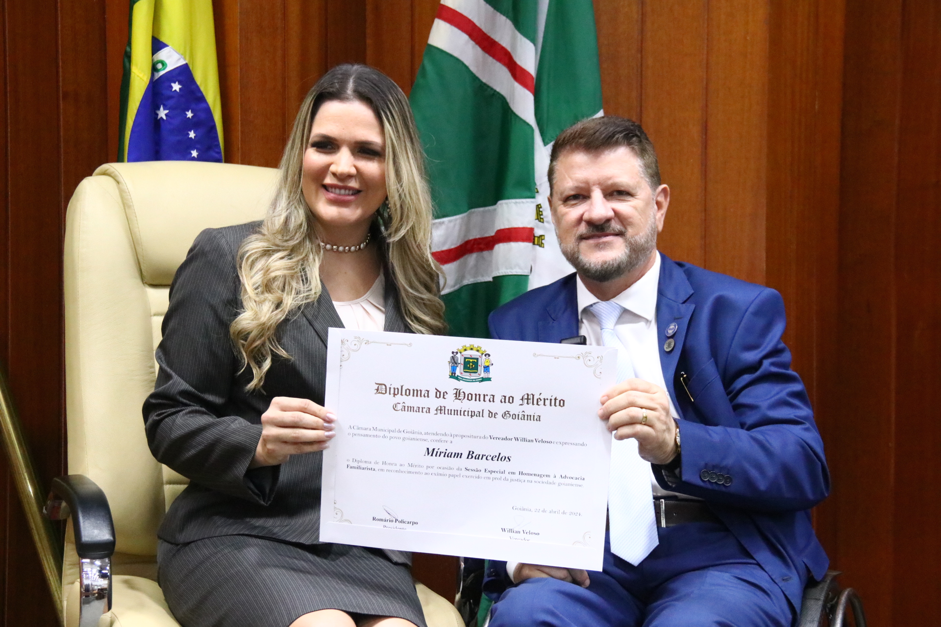 27/4/2024 - Sessão Solene: Entrega de Título de Cidadania Goianiense (Sra. Graziella Flávia Pereira Pires Neiva)