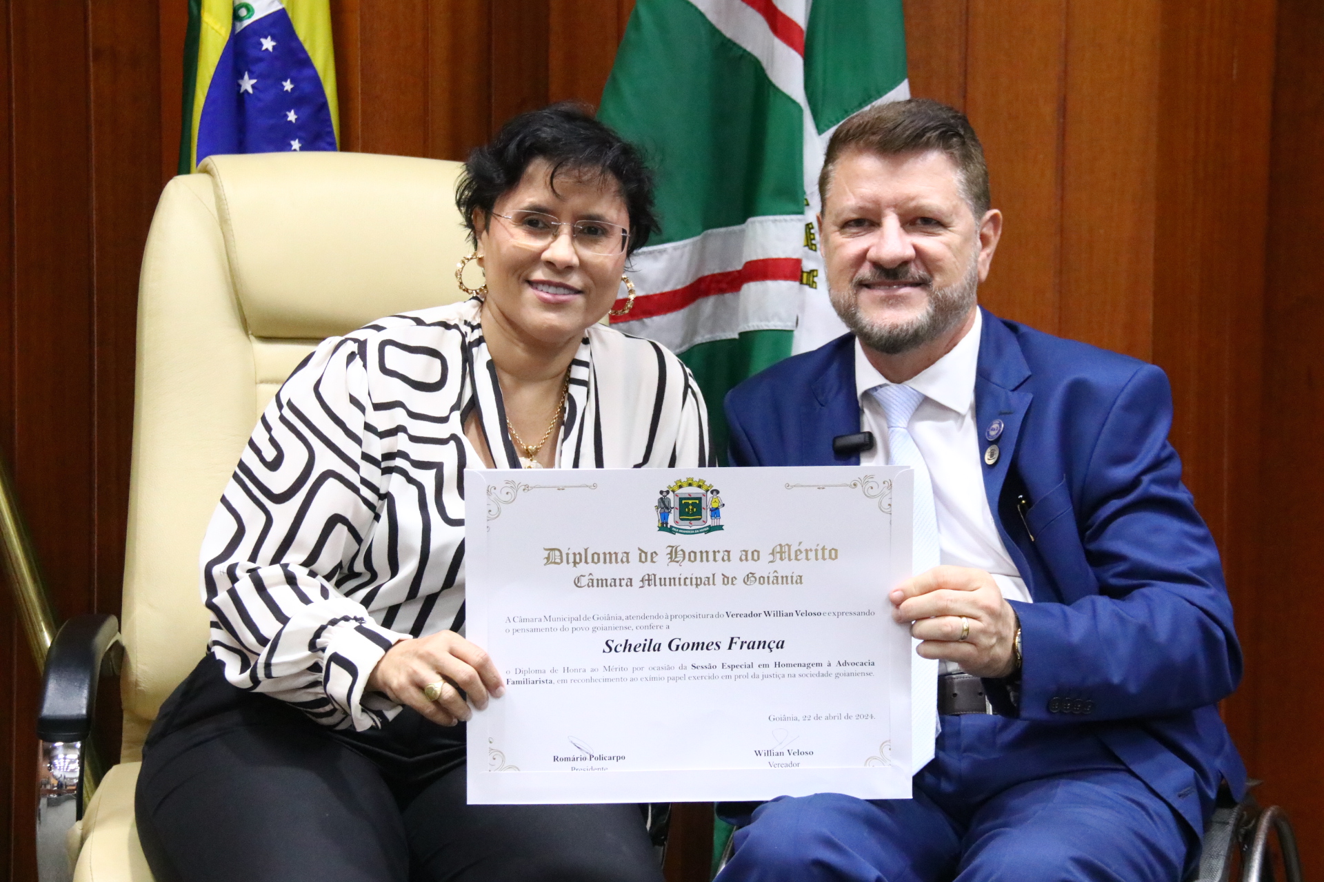 24/4/2024 - Sessão Solene: Entrega de Título Honorífico de Cidadania Goianiense (Sra. Lêda Leal de Souza)