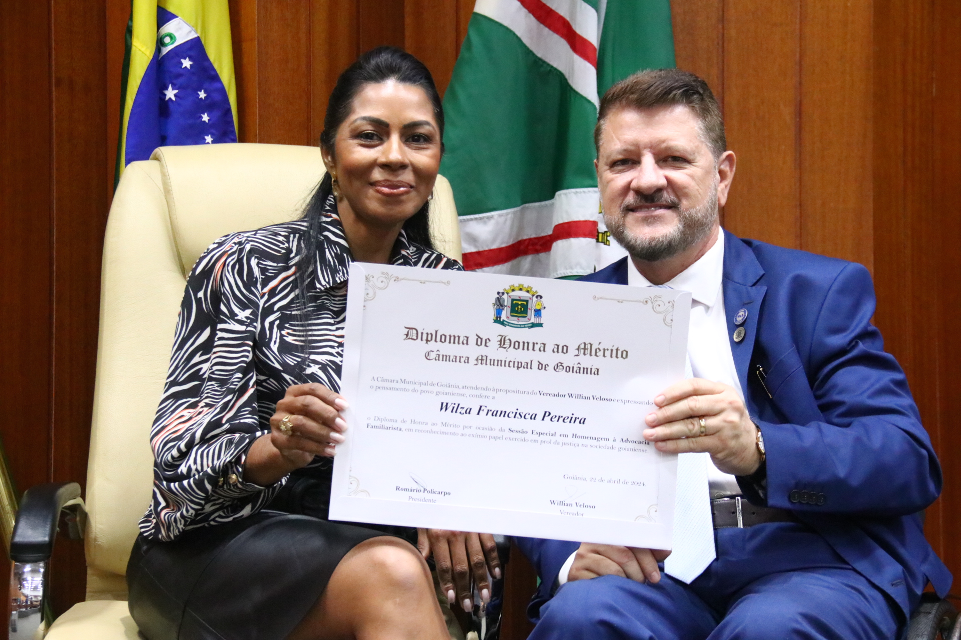 24/4/2024 - Sessão Solene: Entrega de Título Honorífico de Cidadania Goianiense (Sra. Lêda Leal de Souza)