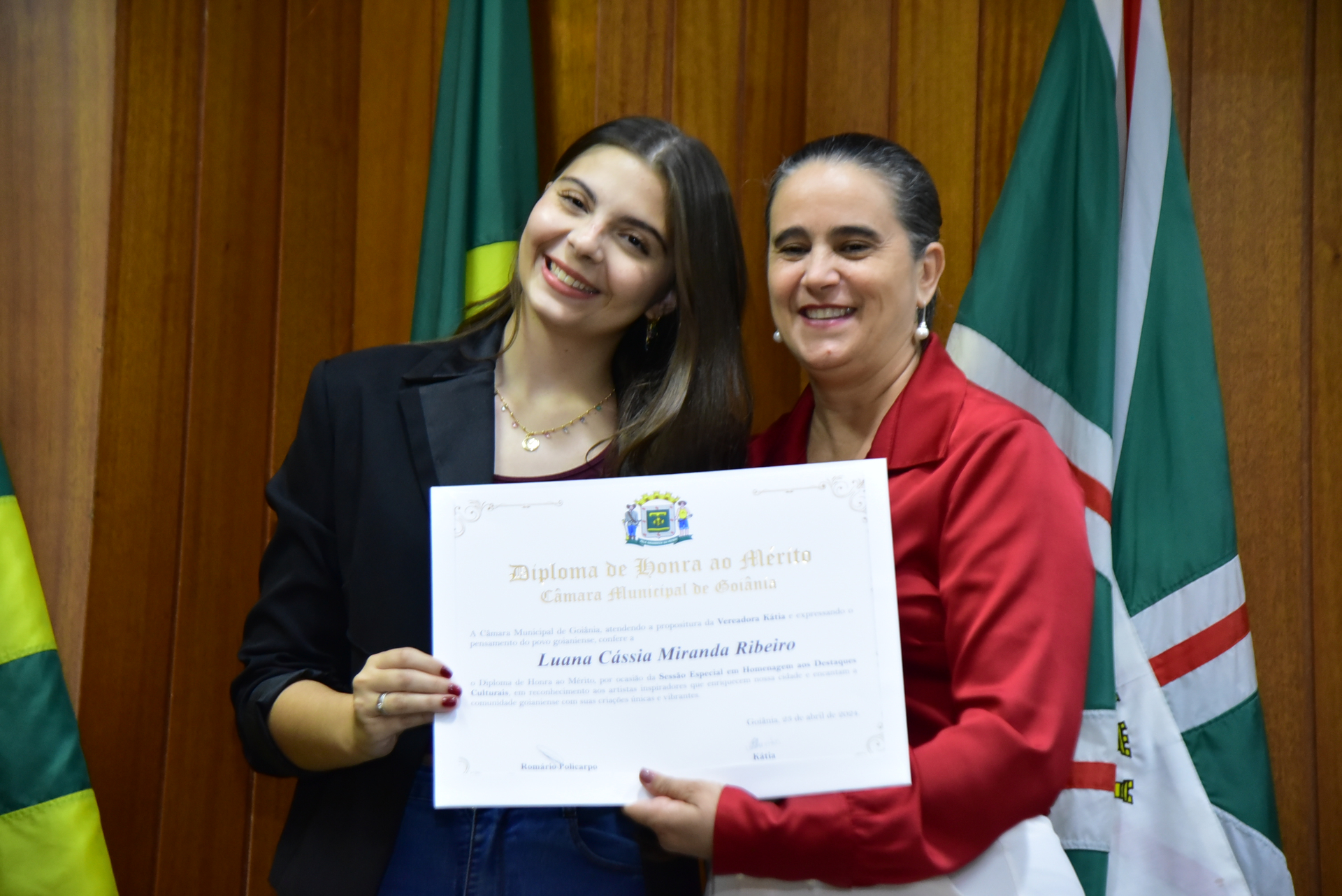 27/4/2024 - Sessão Solene: Entrega de Título de Cidadania Goianiense (Sra. Graziella Flávia Pereira Pires Neiva)