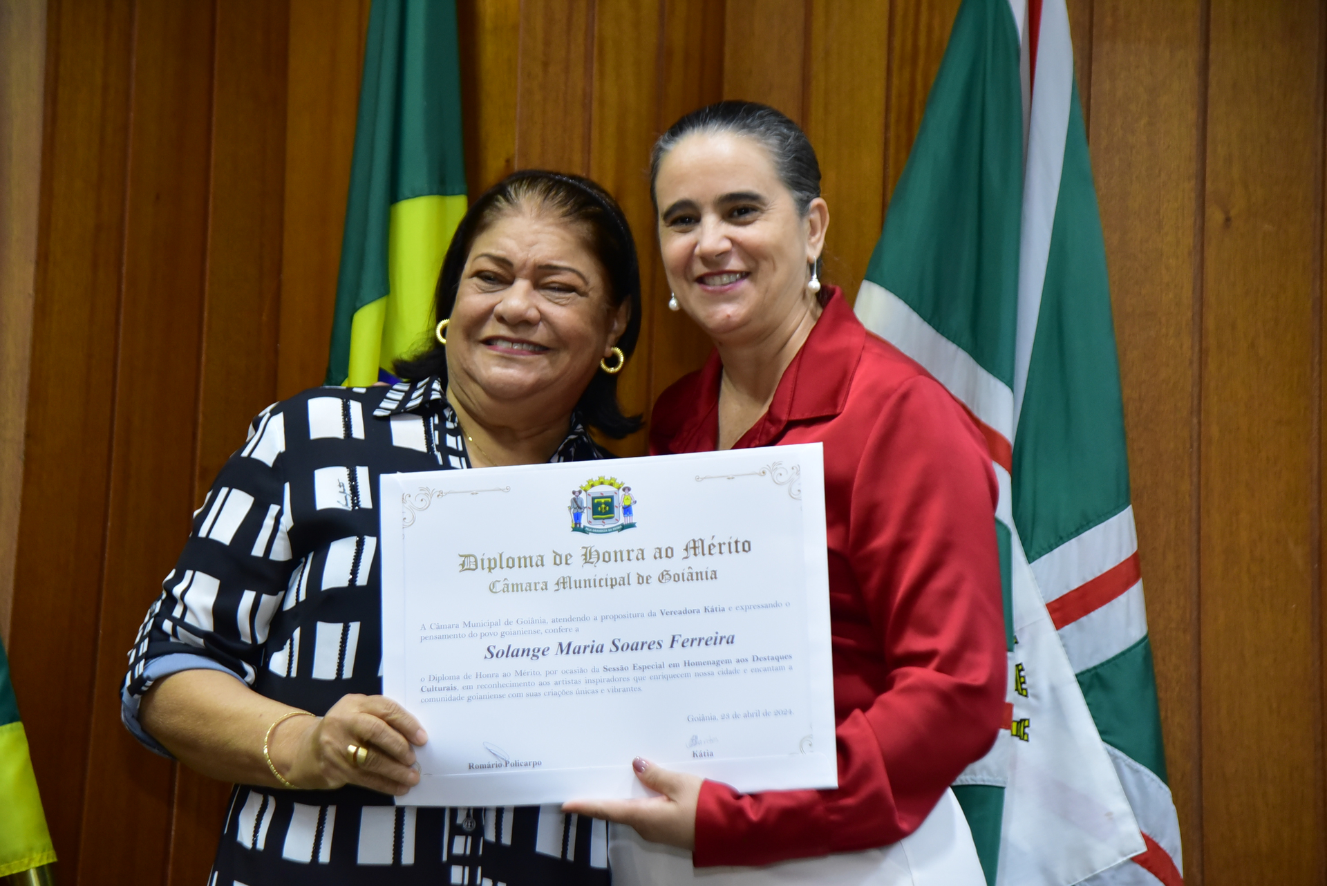 24/4/2024 - Sessão Solene: Entrega de Título Honorífico de Cidadania Goianiense (Sra. Lêda Leal de Souza)