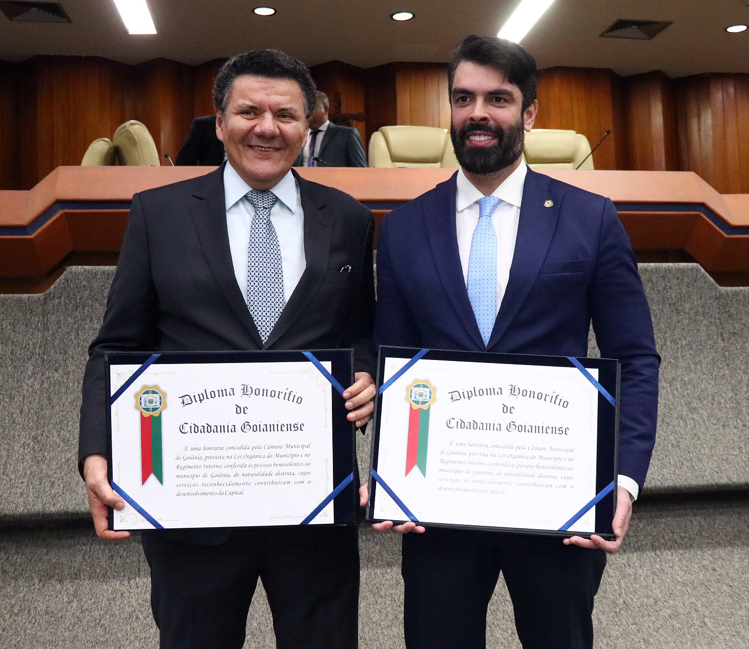 04/06/2024 - Entrega de Título de Cidadania Goianiense (Desembargadores Luis Gustavo Soares Amorim de Sousa e Roberto Carvalho Veloso)