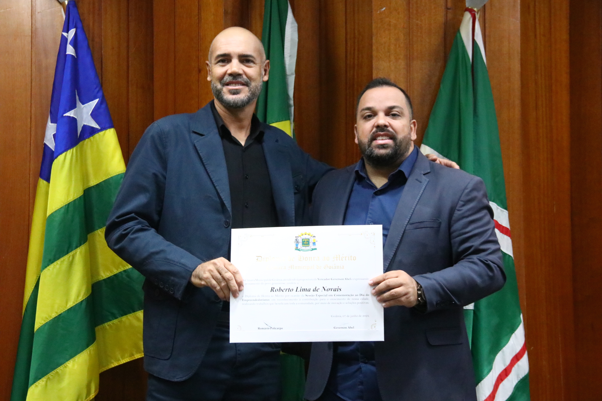 04/06/2024 - Entrega de Título de Cidadania Goianiense (Desembargadores Luis Gustavo Soares Amorim de Sousa e Roberto Carvalho Veloso)