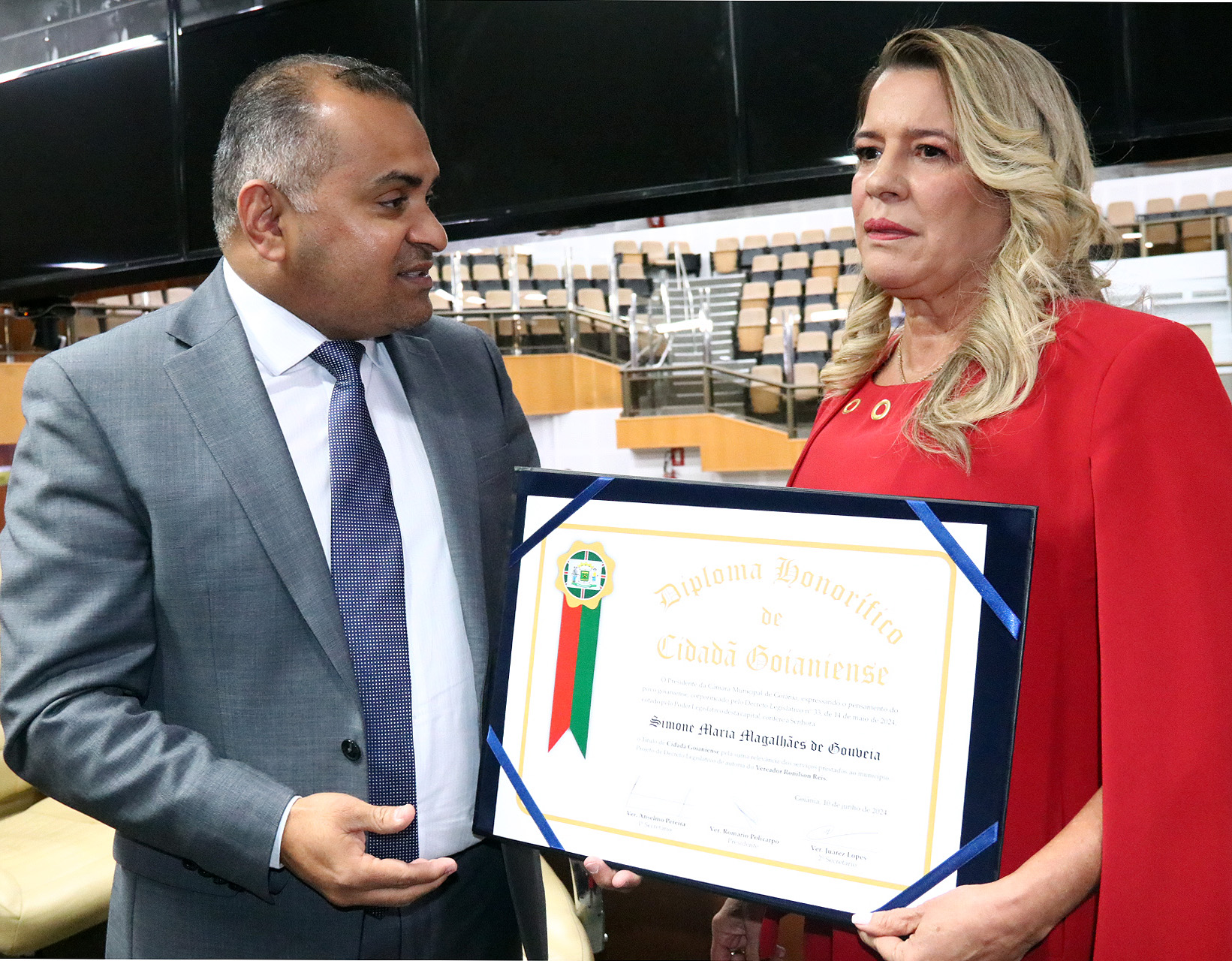 10/06/2024 - Entrega de Título de Cidadania Goianiense (Sra. Simone Maria Magalhães de Gouveia)