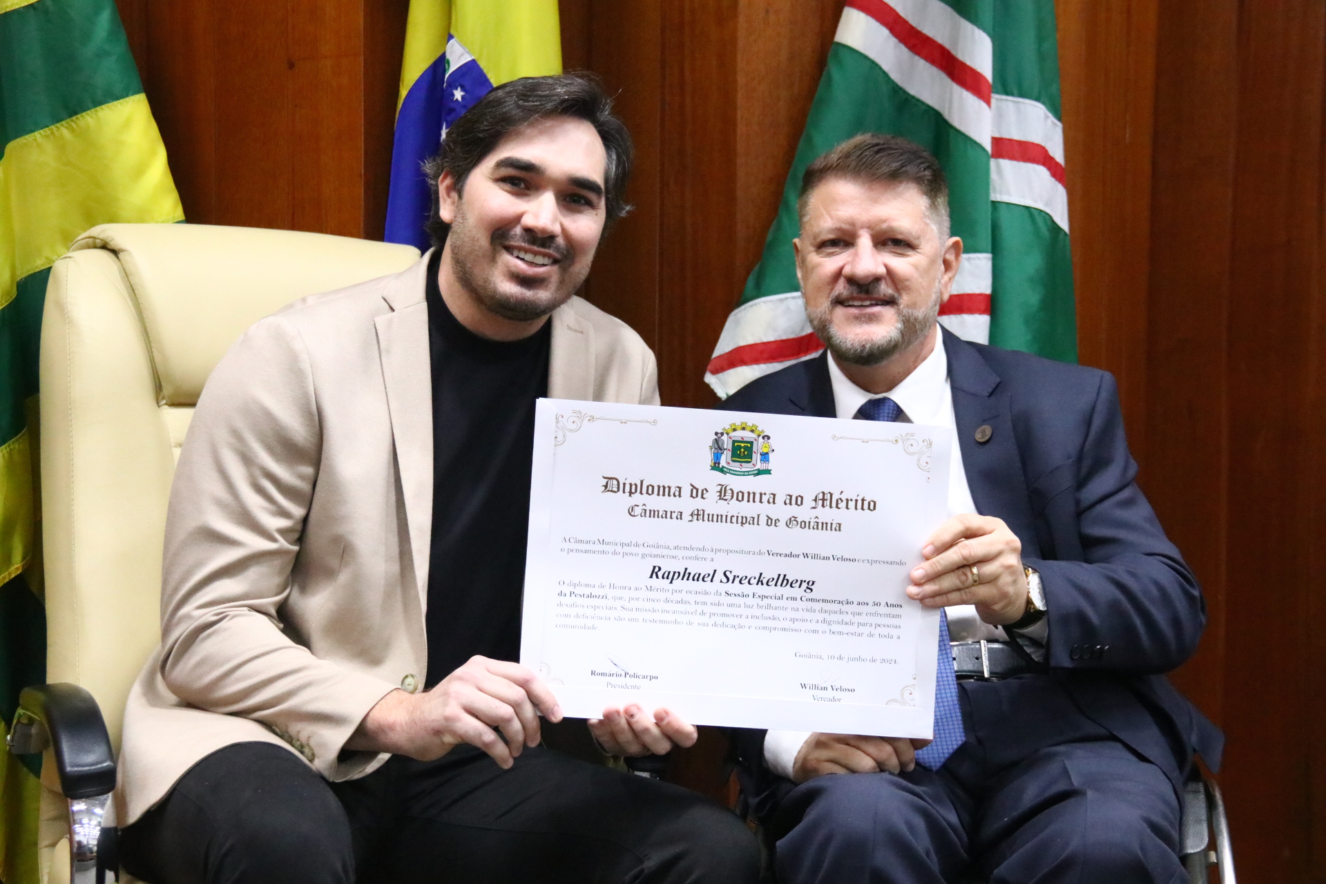 26/06/2024 - Sessão Solene: Entrega de Título de Cidadania Goianiense (Sr. Sandro Lucena Rosa)