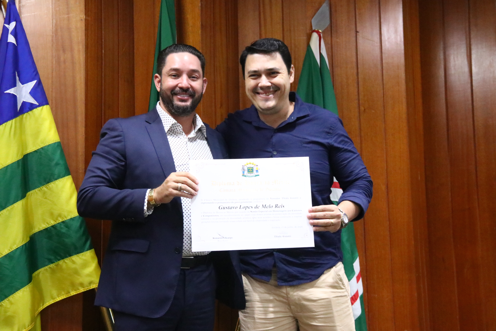 04/06/2024 - Entrega de Título de Cidadania Goianiense (Desembargadores Luis Gustavo Soares Amorim de Sousa e Roberto Carvalho Veloso)