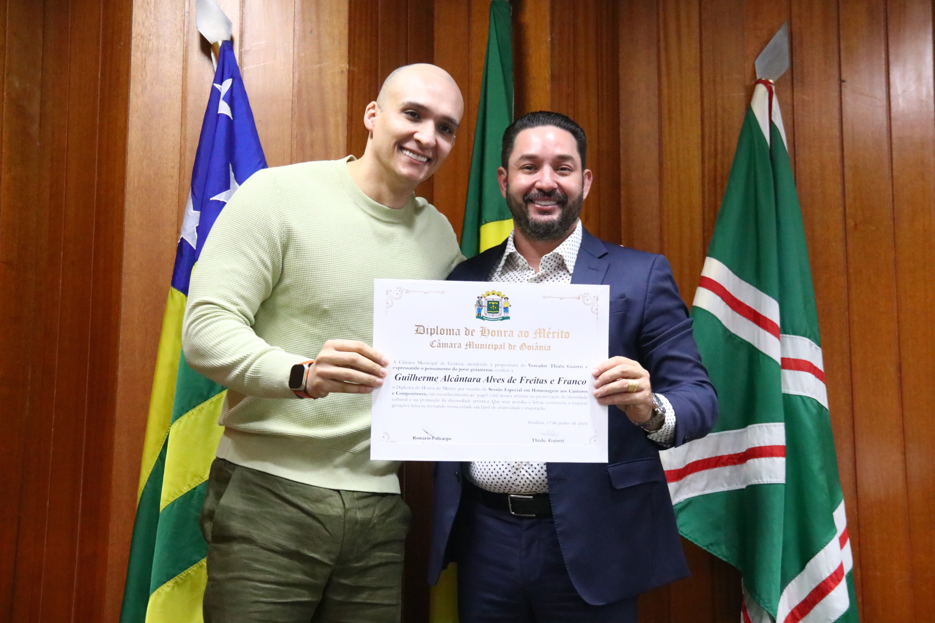04/06/2024 - Entrega de Título de Cidadania Goianiense (Desembargadores Luis Gustavo Soares Amorim de Sousa e Roberto Carvalho Veloso)