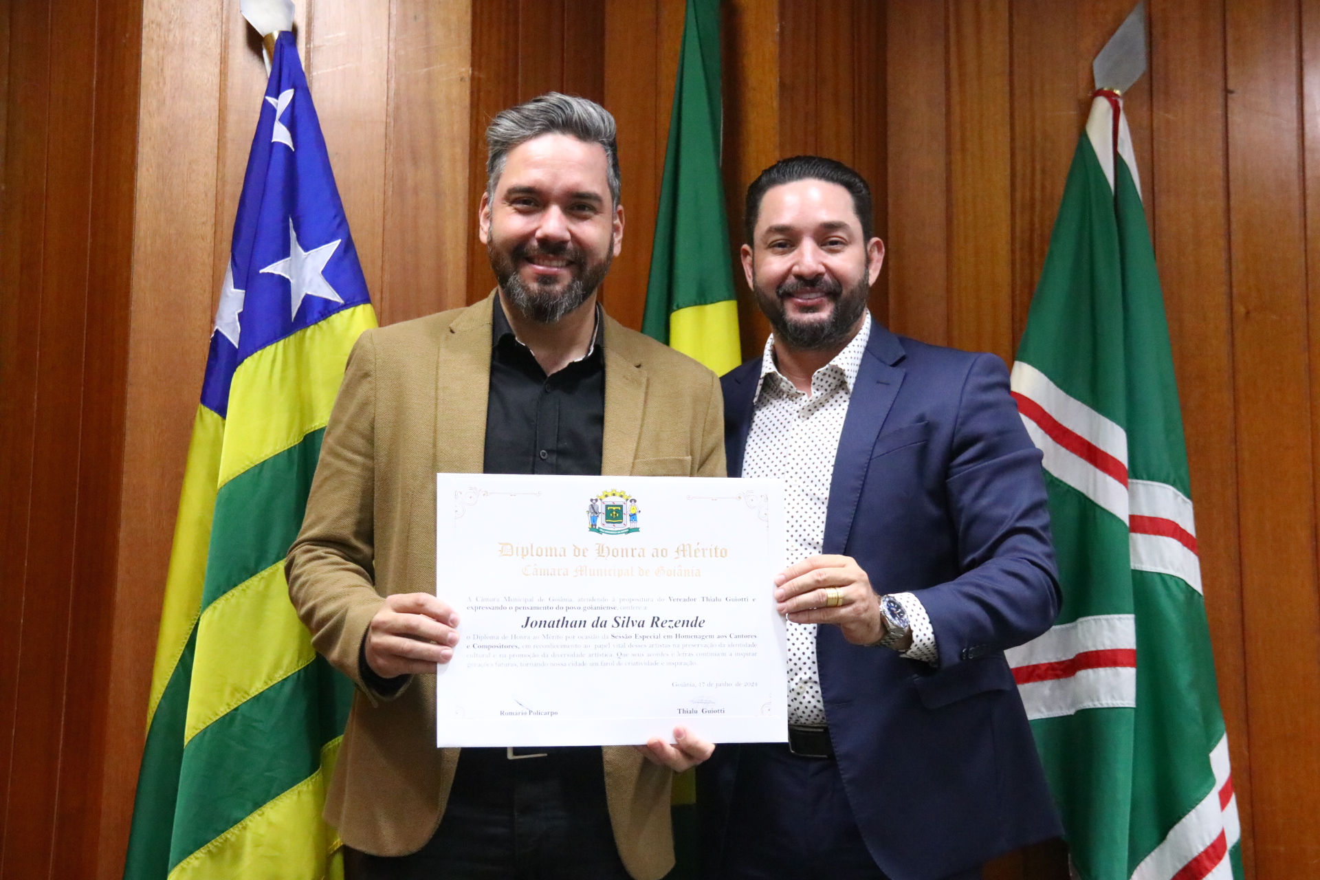 04/06/2024 - Entrega de Título de Cidadania Goianiense (Desembargadores Luis Gustavo Soares Amorim de Sousa e Roberto Carvalho Veloso)