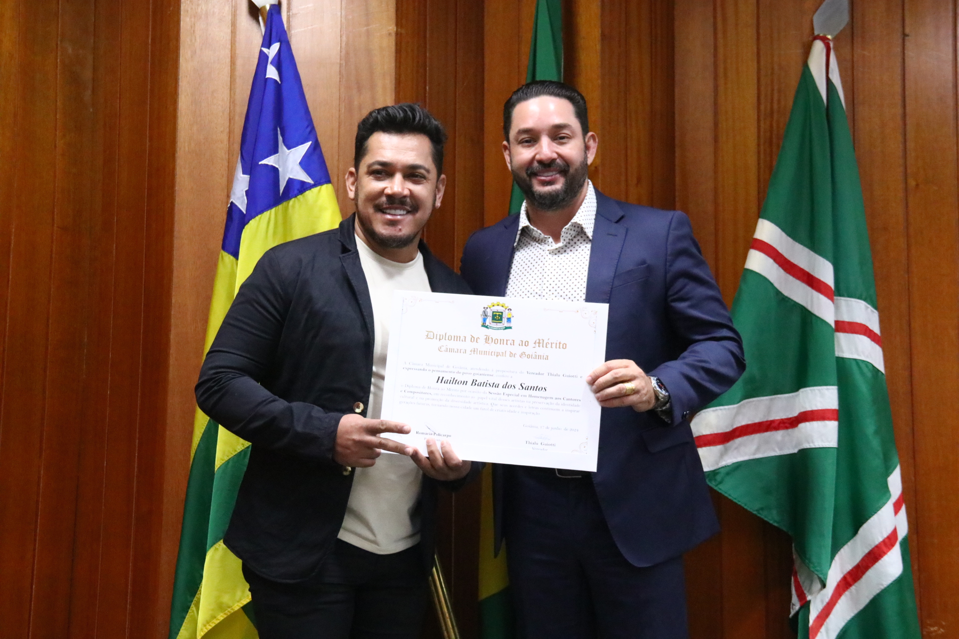 04/06/2024 - Entrega de Título de Cidadania Goianiense (Desembargadores Luis Gustavo Soares Amorim de Sousa e Roberto Carvalho Veloso)