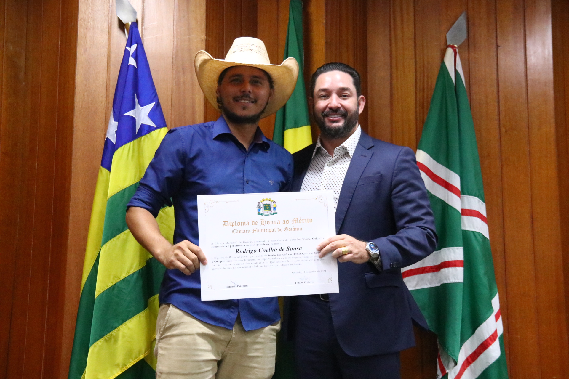 04/06/2024 - Entrega de Título de Cidadania Goianiense (Desembargadores Luis Gustavo Soares Amorim de Sousa e Roberto Carvalho Veloso)