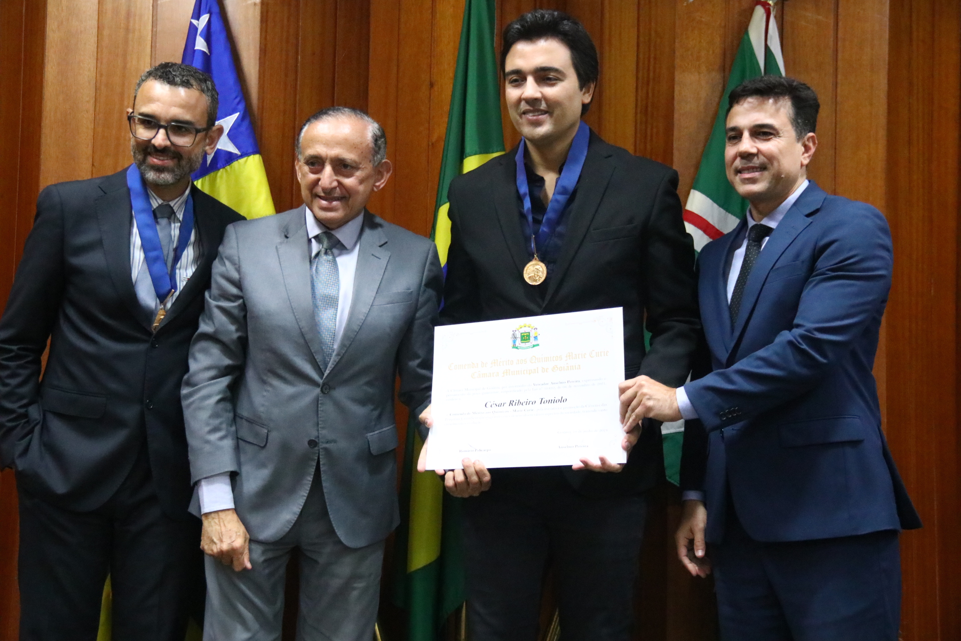 04/06/2024 - Entrega de Título de Cidadania Goianiense (Desembargadores Luis Gustavo Soares Amorim de Sousa e Roberto Carvalho Veloso)