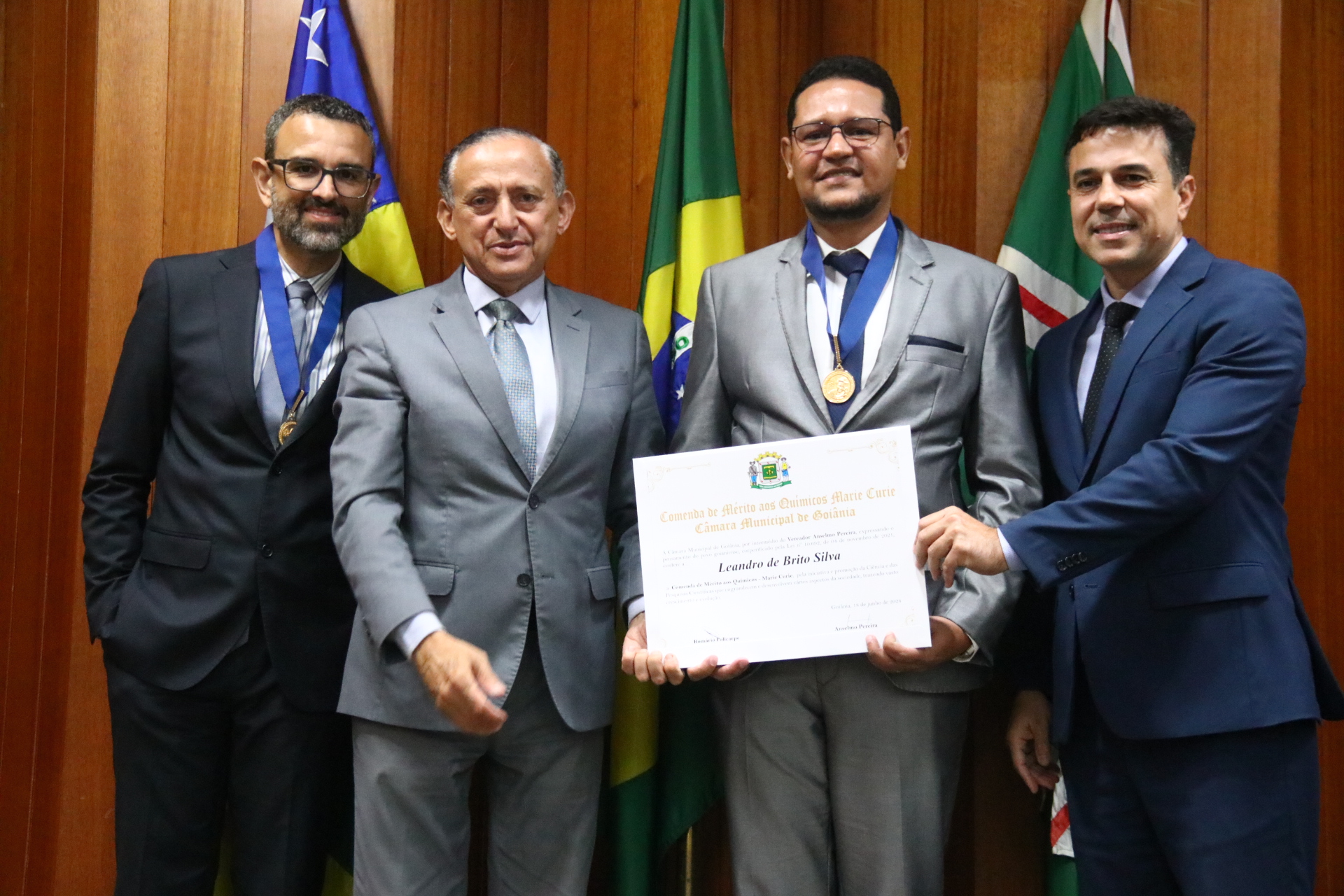 04/06/2024 - Entrega de Título de Cidadania Goianiense (Desembargadores Luis Gustavo Soares Amorim de Sousa e Roberto Carvalho Veloso)