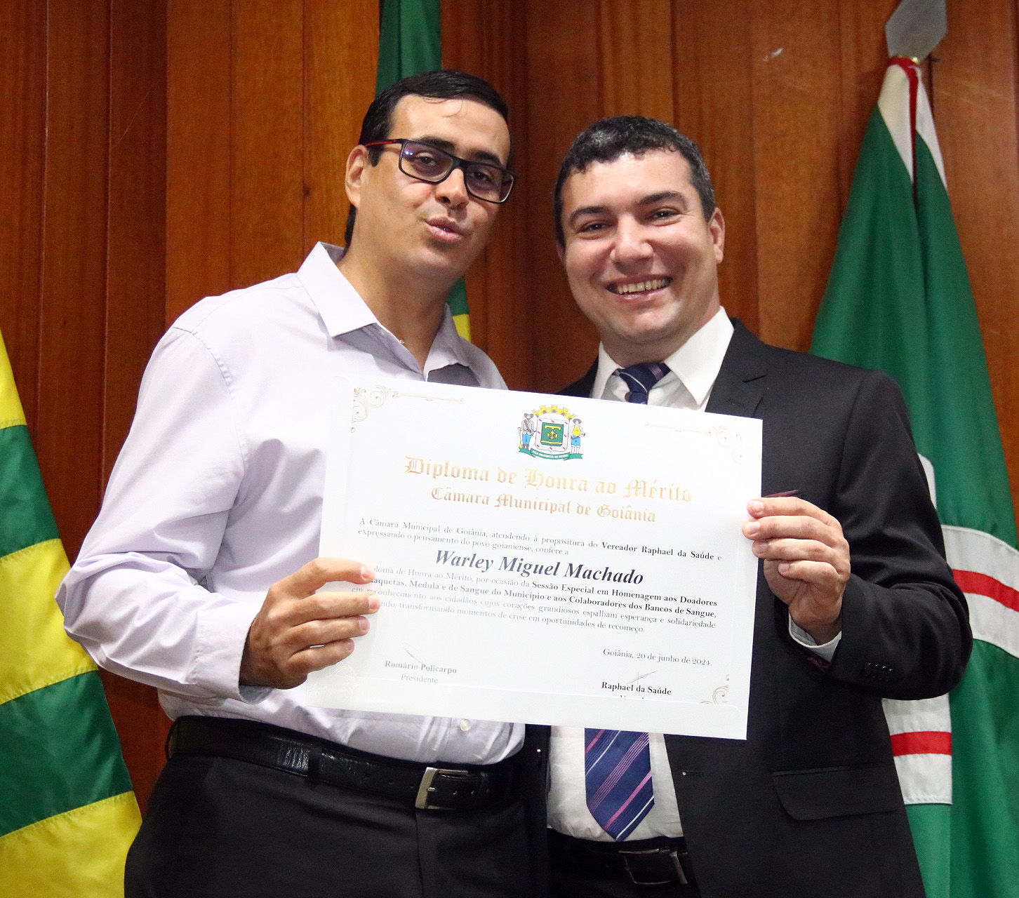 04/06/2024 - Entrega de Título de Cidadania Goianiense (Desembargadores Luis Gustavo Soares Amorim de Sousa e Roberto Carvalho Veloso)