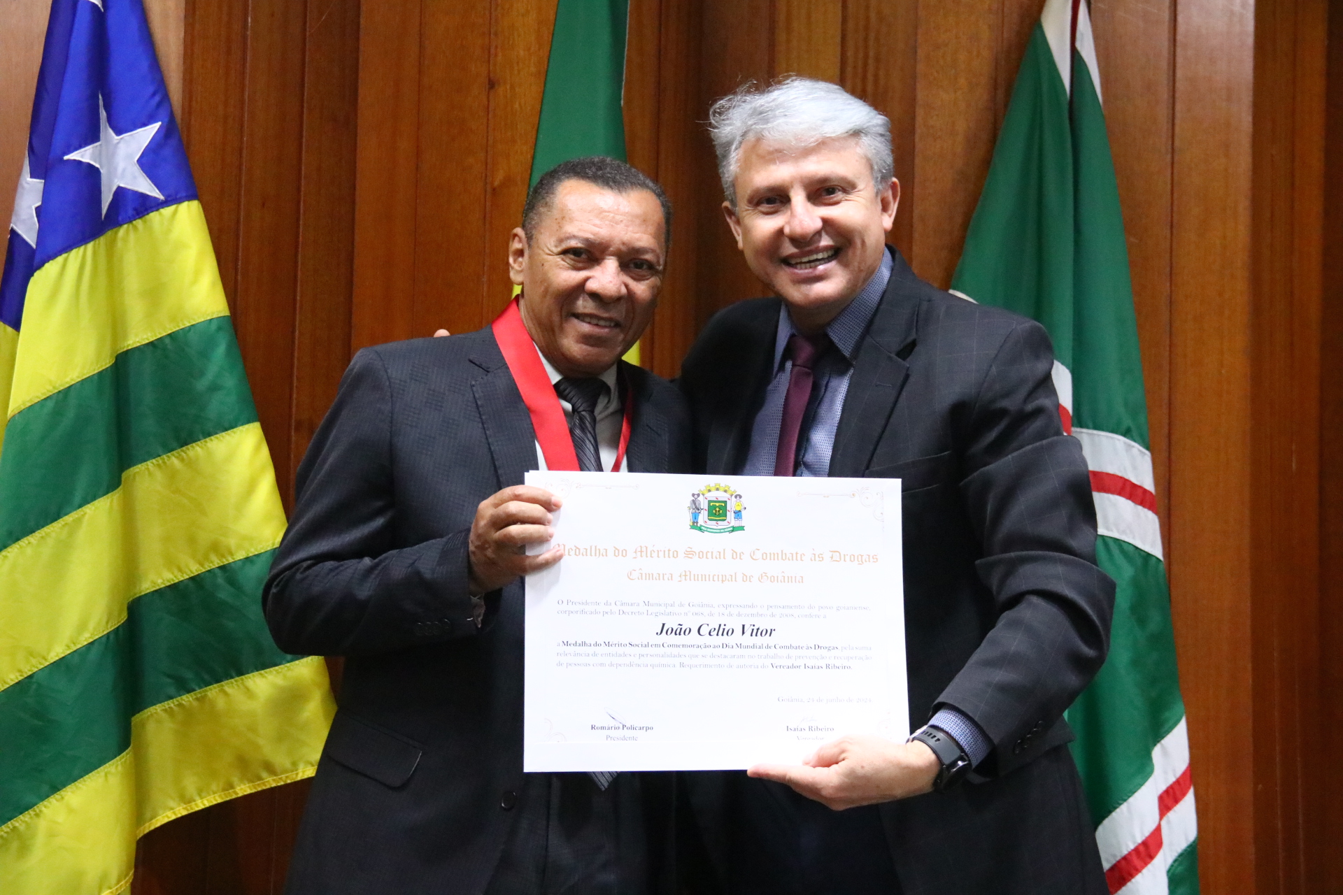 04/06/2024 - Entrega de Título de Cidadania Goianiense (Desembargadores Luis Gustavo Soares Amorim de Sousa e Roberto Carvalho Veloso)