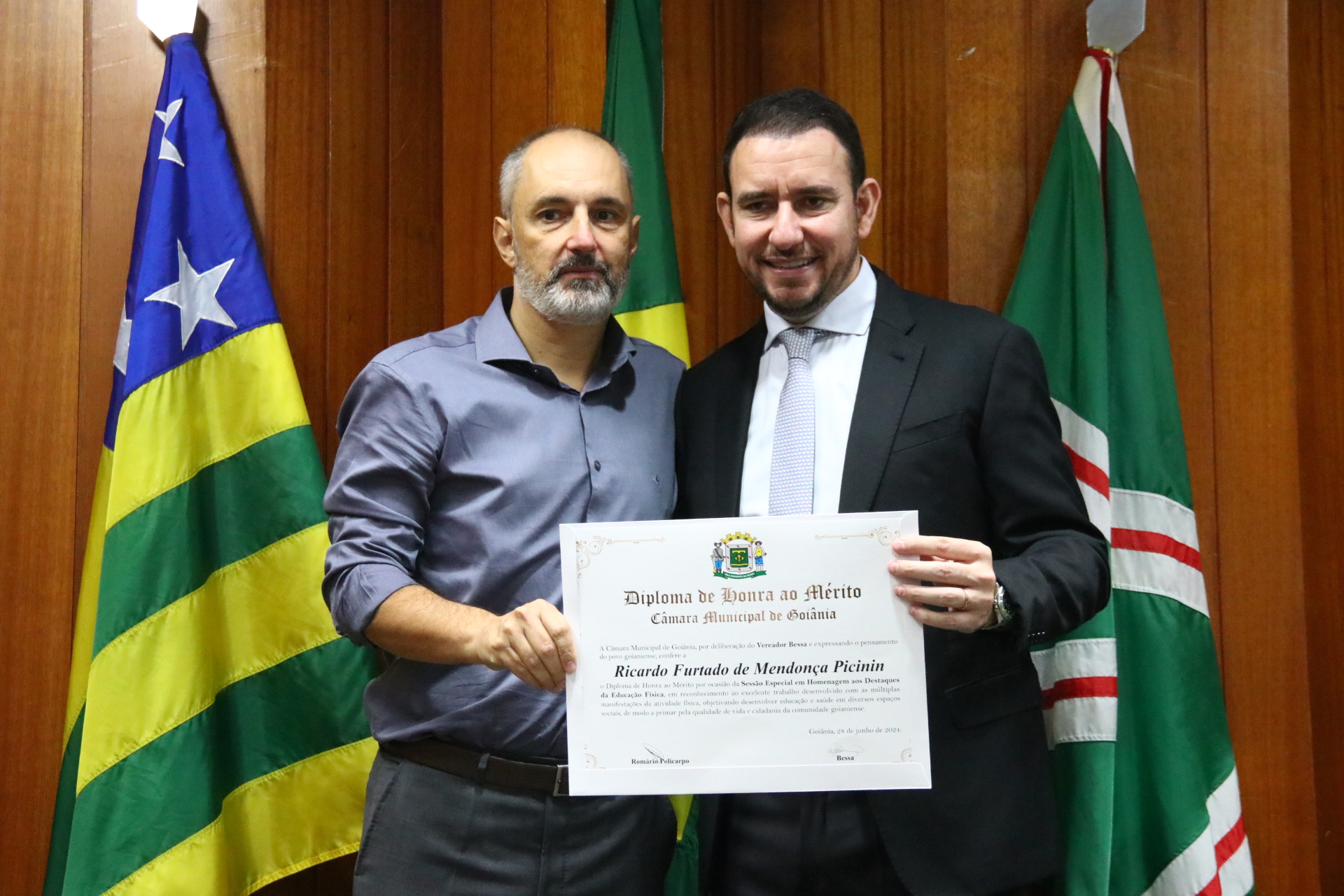 04/06/2024 - Entrega de Título de Cidadania Goianiense (Desembargadores Luis Gustavo Soares Amorim de Sousa e Roberto Carvalho Veloso)