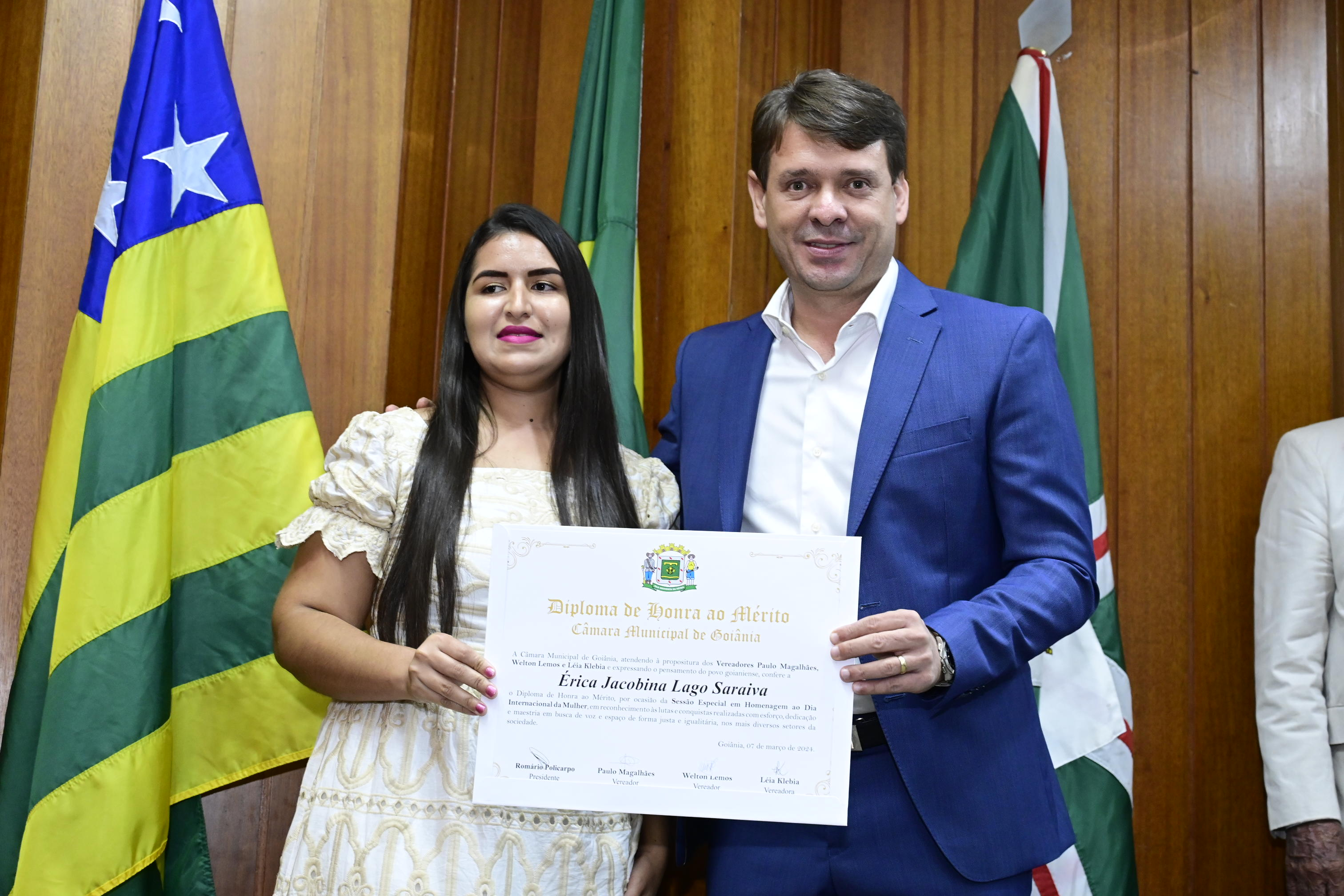 21/03/2024 - Entrega de Título de Cidadania Goianiense (Sra. Márcia Pereira de Melo e Sr. Ricardo David de Melo)