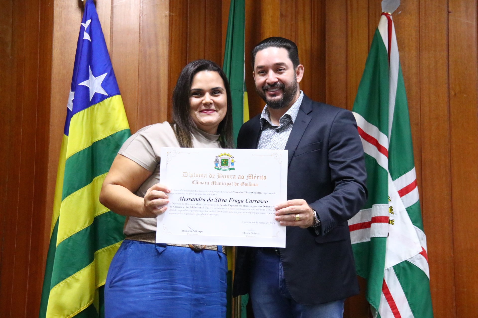 21/03/2024 - Entrega de Título de Cidadania Goianiense (Sra. Márcia Pereira de Melo e Sr. Ricardo David de Melo)