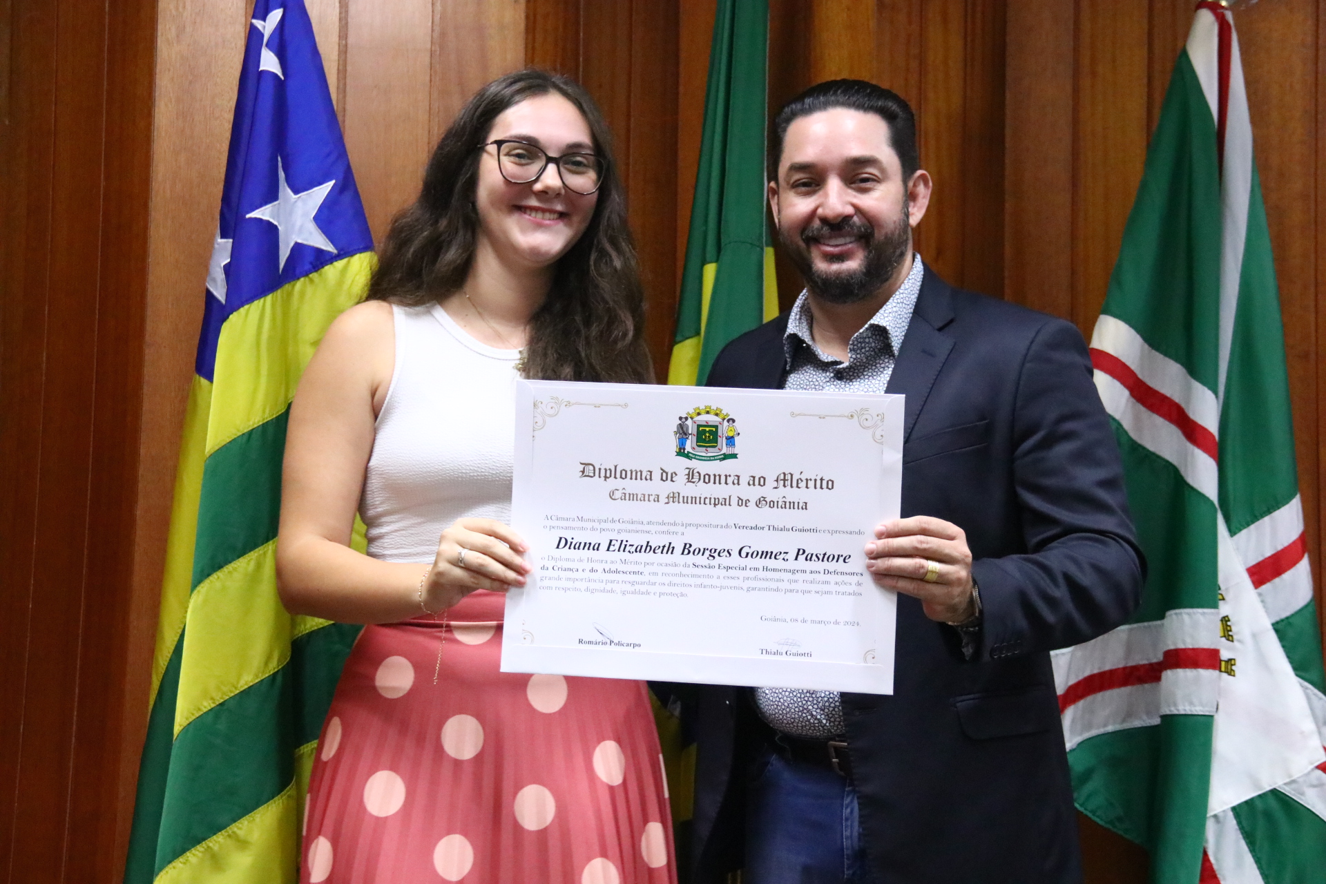 21/03/2024 - Entrega de Título de Cidadania Goianiense (Sra. Márcia Pereira de Melo e Sr. Ricardo David de Melo)