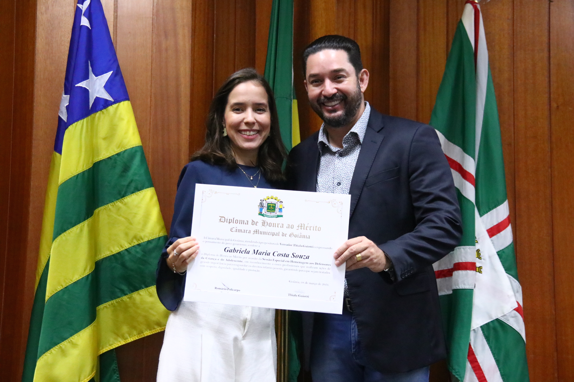 21/03/2024 - Entrega de Título de Cidadania Goianiense (Sra. Márcia Pereira de Melo e Sr. Ricardo David de Melo)