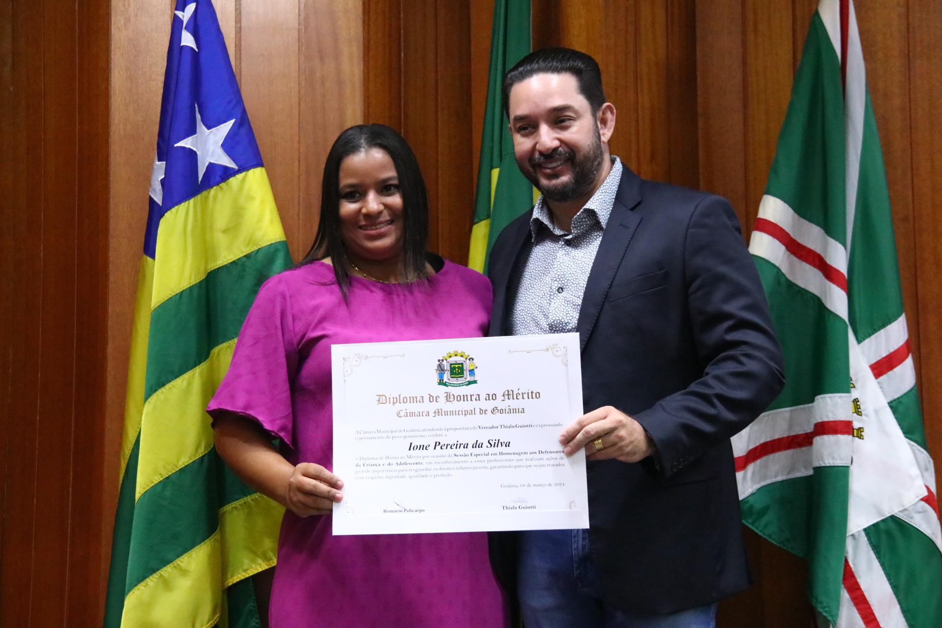 21/03/2024 - Entrega de Título de Cidadania Goianiense (Sra. Márcia Pereira de Melo e Sr. Ricardo David de Melo)