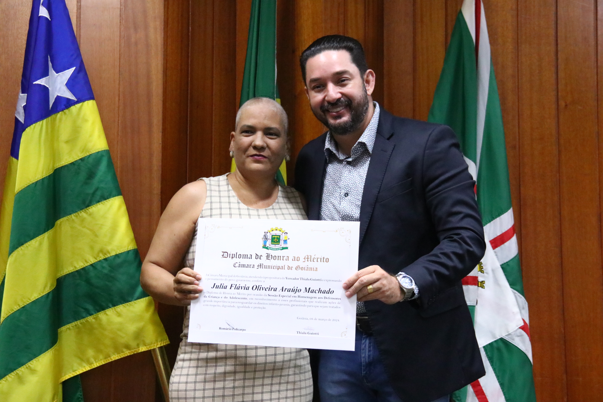 21/03/2024 - Entrega de Título de Cidadania Goianiense (Sra. Márcia Pereira de Melo e Sr. Ricardo David de Melo)