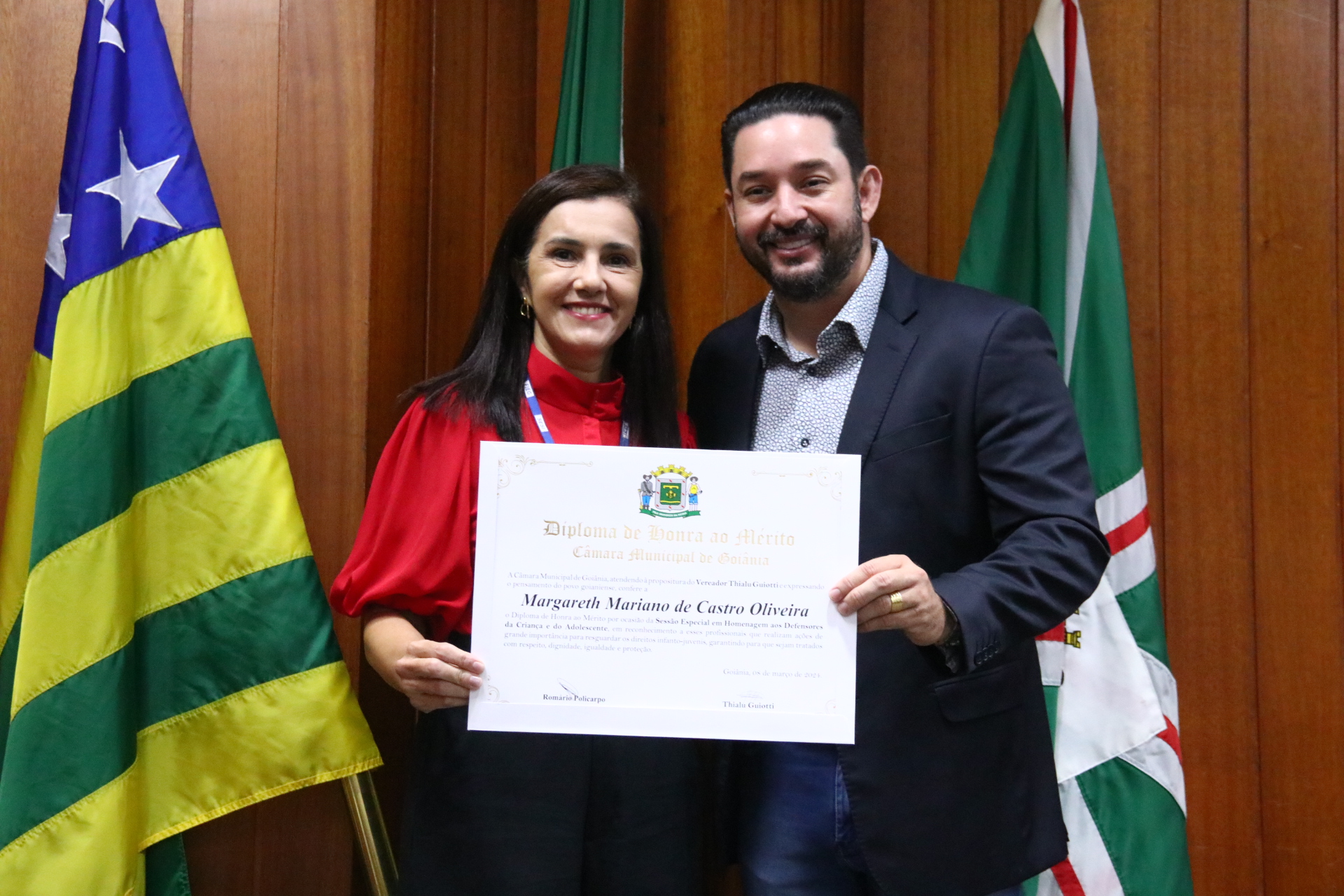 21/03/2024 - Entrega de Título de Cidadania Goianiense (Sra. Márcia Pereira de Melo e Sr. Ricardo David de Melo)