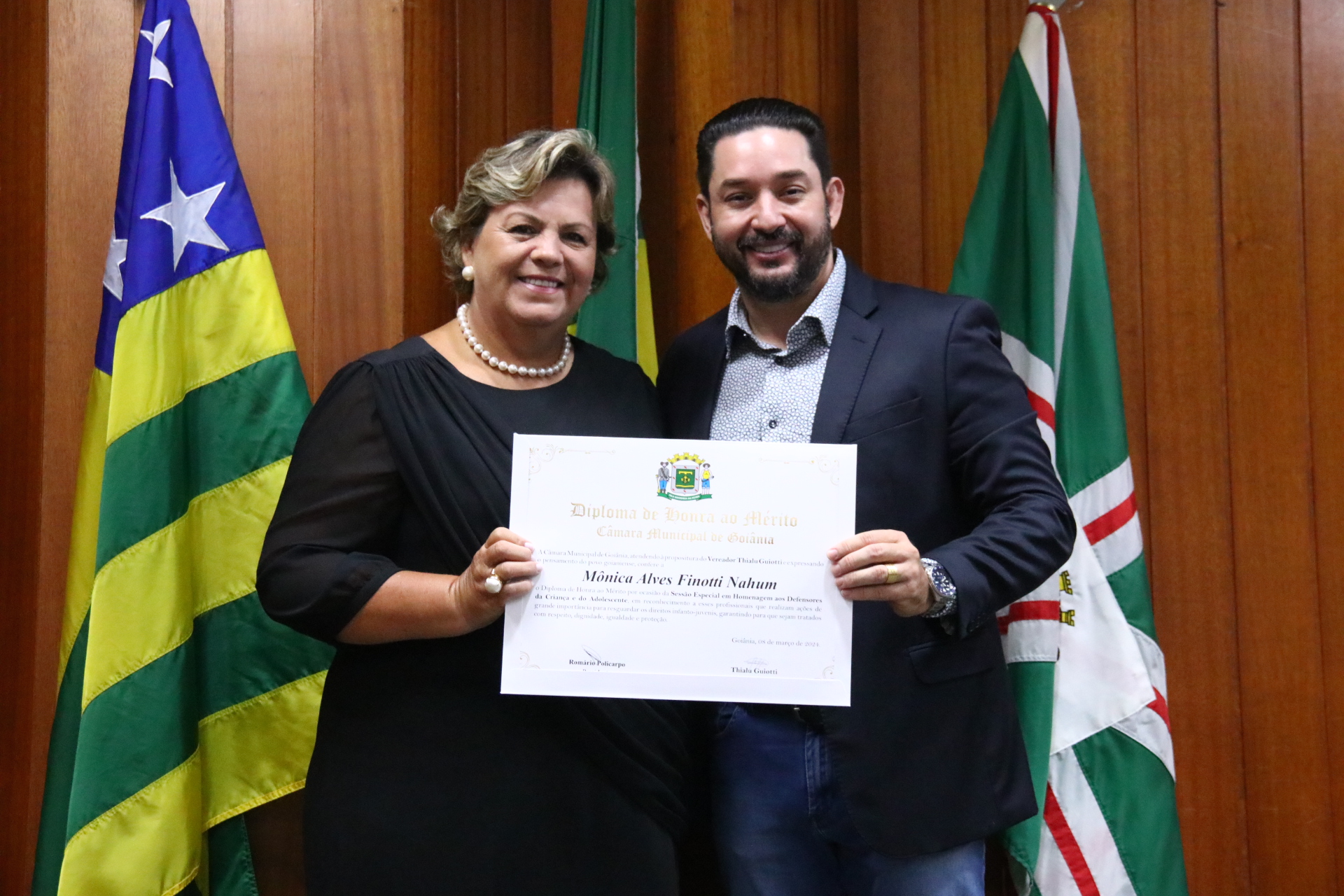 21/03/2024 - Entrega de Título de Cidadania Goianiense (Sra. Márcia Pereira de Melo e Sr. Ricardo David de Melo)