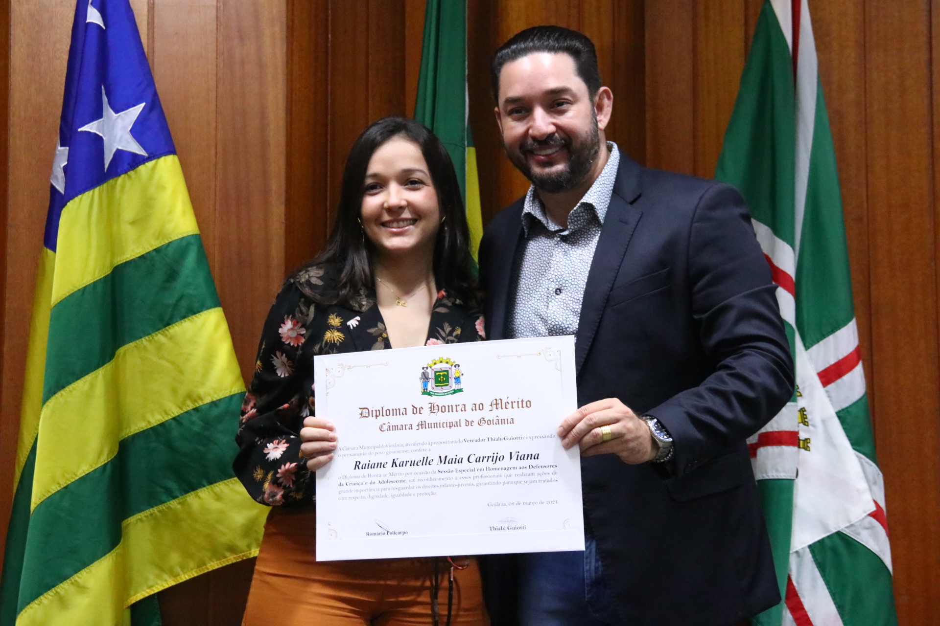 21/03/2024 - Entrega de Título de Cidadania Goianiense (Sra. Márcia Pereira de Melo e Sr. Ricardo David de Melo)