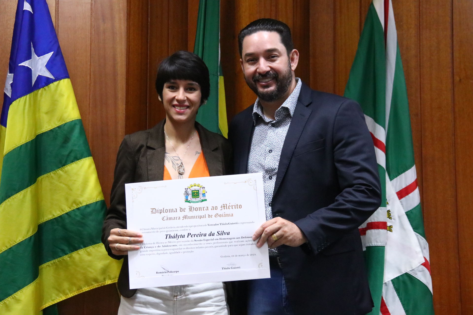 21/03/2024 - Entrega de Título de Cidadania Goianiense (Sra. Márcia Pereira de Melo e Sr. Ricardo David de Melo)