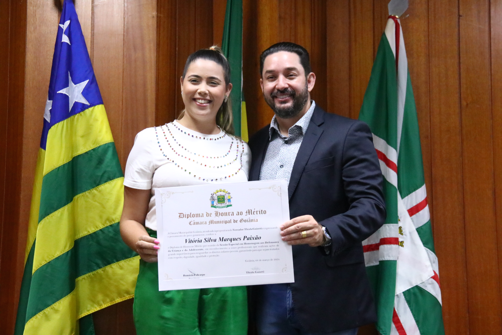 21/03/2024 - Entrega de Título de Cidadania Goianiense (Sra. Márcia Pereira de Melo e Sr. Ricardo David de Melo)