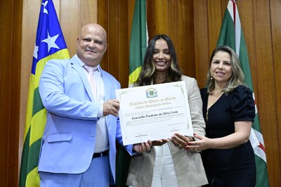 21/03/2024 - Entrega de Título de Cidadania Goianiense (Sra. Márcia Pereira de Melo e Sr. Ricardo David de Melo)
