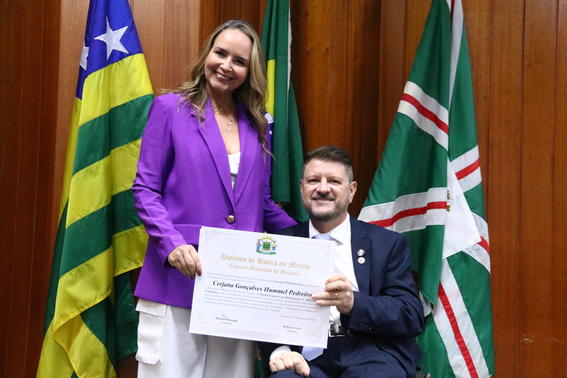 21/03/2024 - Entrega de Título de Cidadania Goianiense (Sra. Márcia Pereira de Melo e Sr. Ricardo David de Melo)