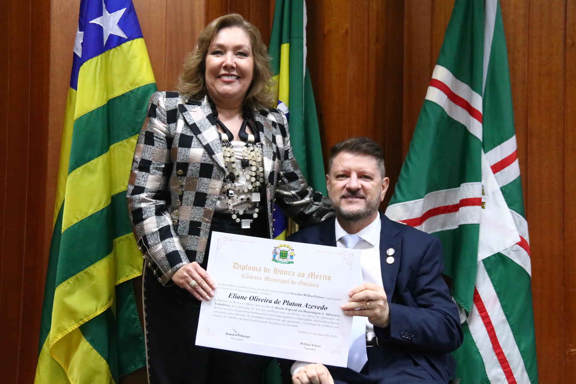 21/03/2024 - Entrega de Título de Cidadania Goianiense (Sra. Márcia Pereira de Melo e Sr. Ricardo David de Melo)