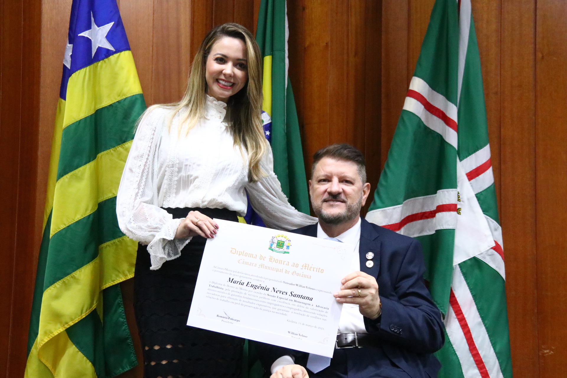 21/03/2024 - Entrega de Título de Cidadania Goianiense (Sra. Márcia Pereira de Melo e Sr. Ricardo David de Melo)