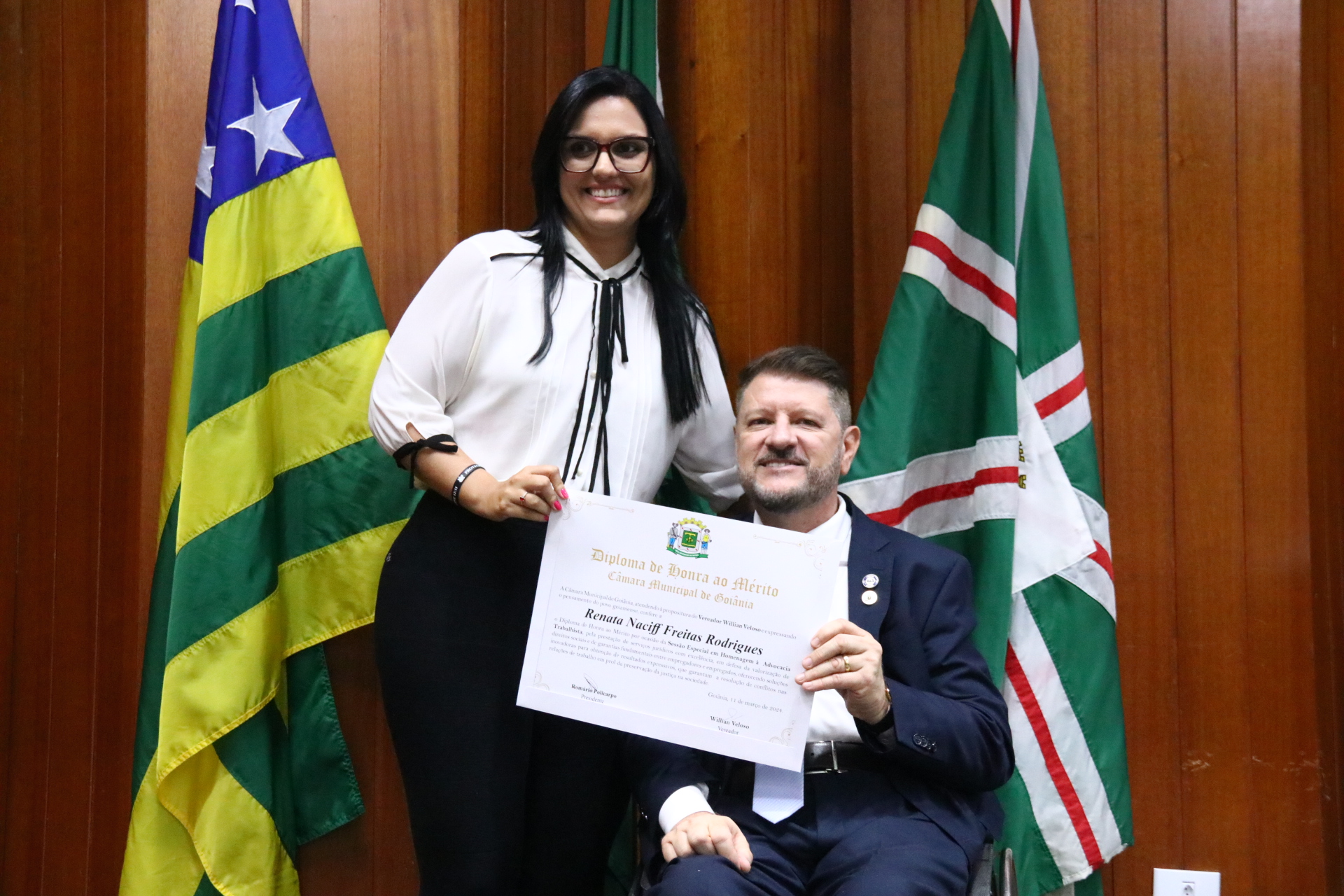 21/03/2024 - Entrega de Título de Cidadania Goianiense (Sra. Márcia Pereira de Melo e Sr. Ricardo David de Melo)