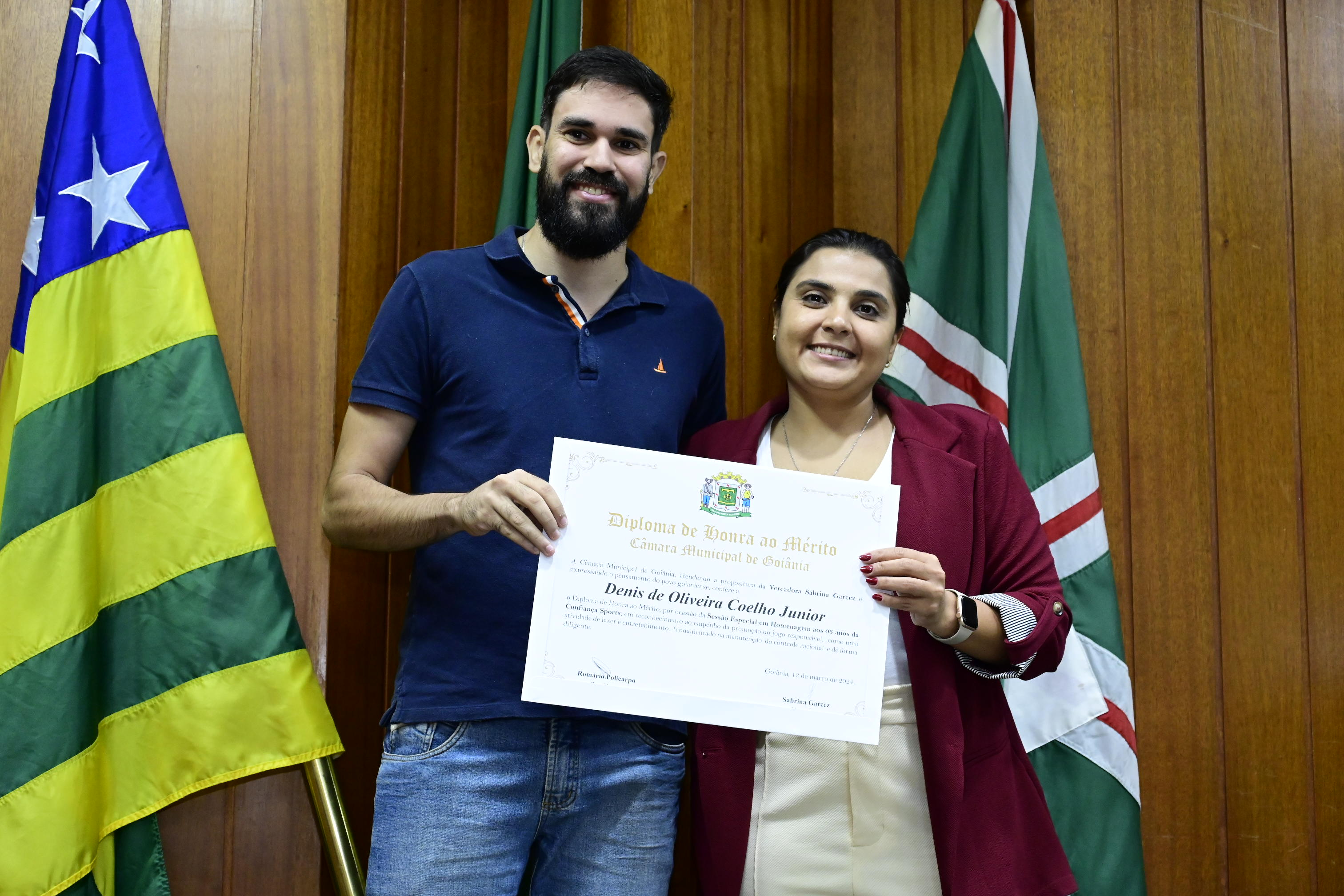 21/03/2024 - Entrega de Título de Cidadania Goianiense (Sra. Márcia Pereira de Melo e Sr. Ricardo David de Melo)
