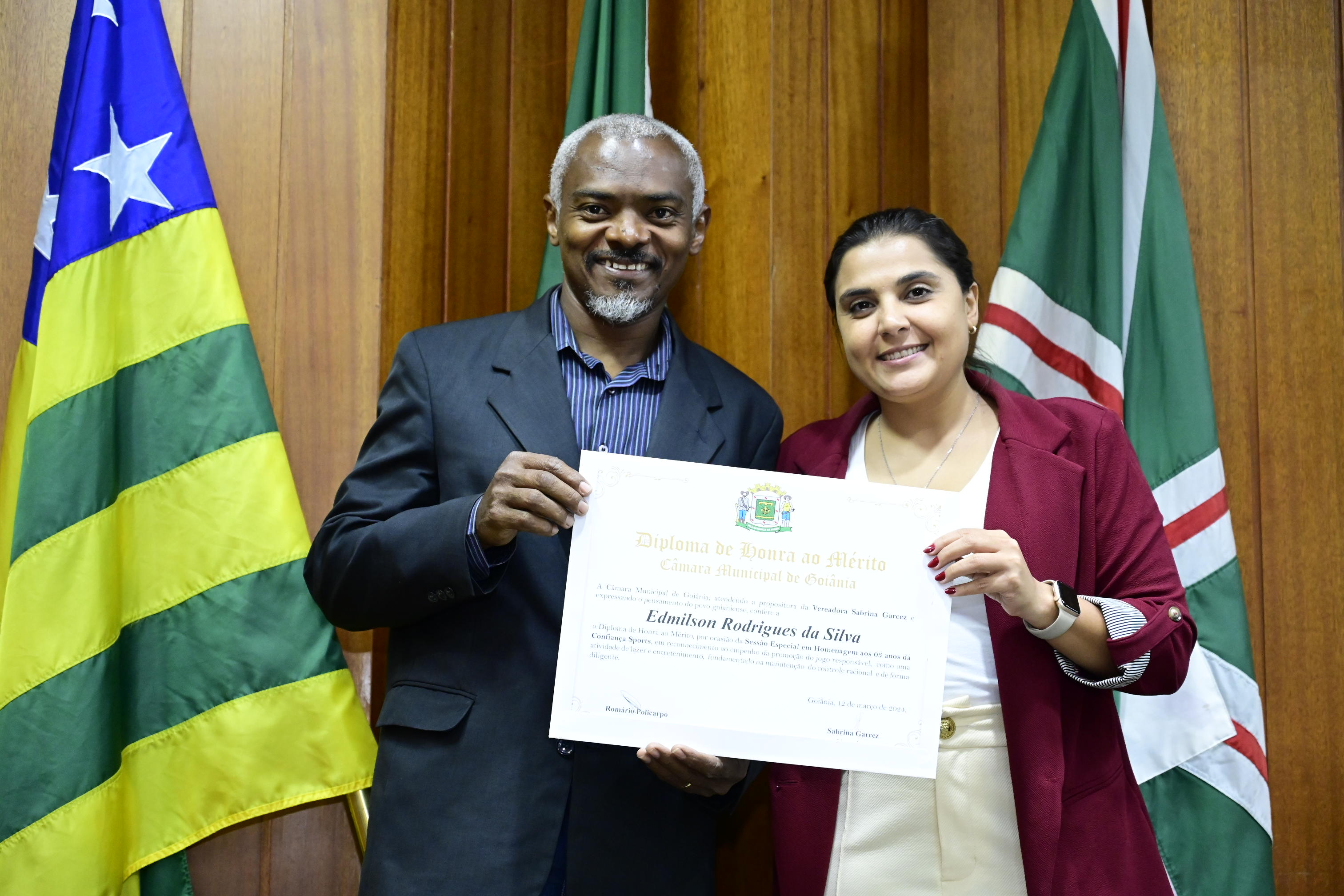 21/03/2024 - Entrega de Título de Cidadania Goianiense (Sra. Márcia Pereira de Melo e Sr. Ricardo David de Melo)