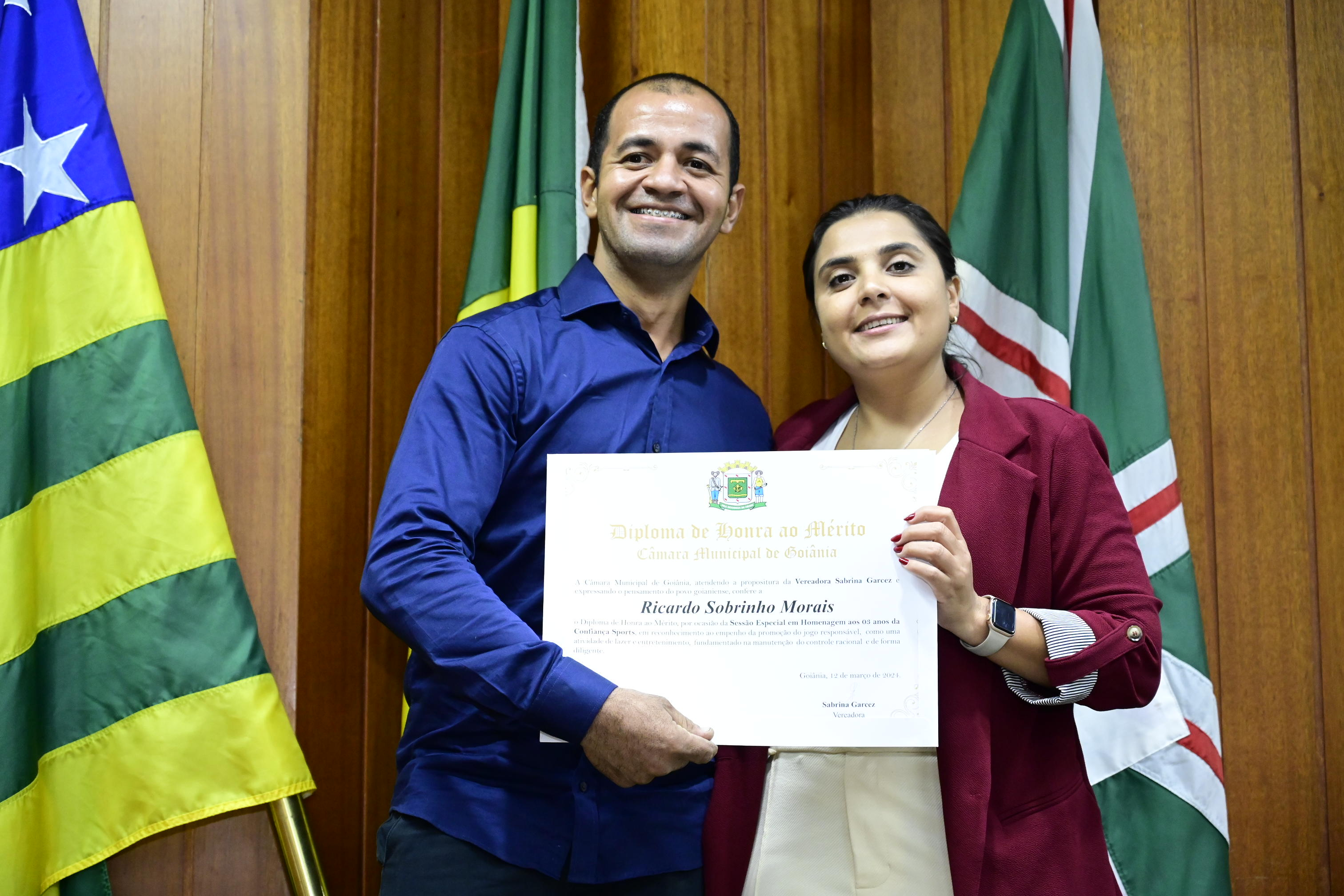 21/03/2024 - Entrega de Título de Cidadania Goianiense (Sra. Márcia Pereira de Melo e Sr. Ricardo David de Melo)