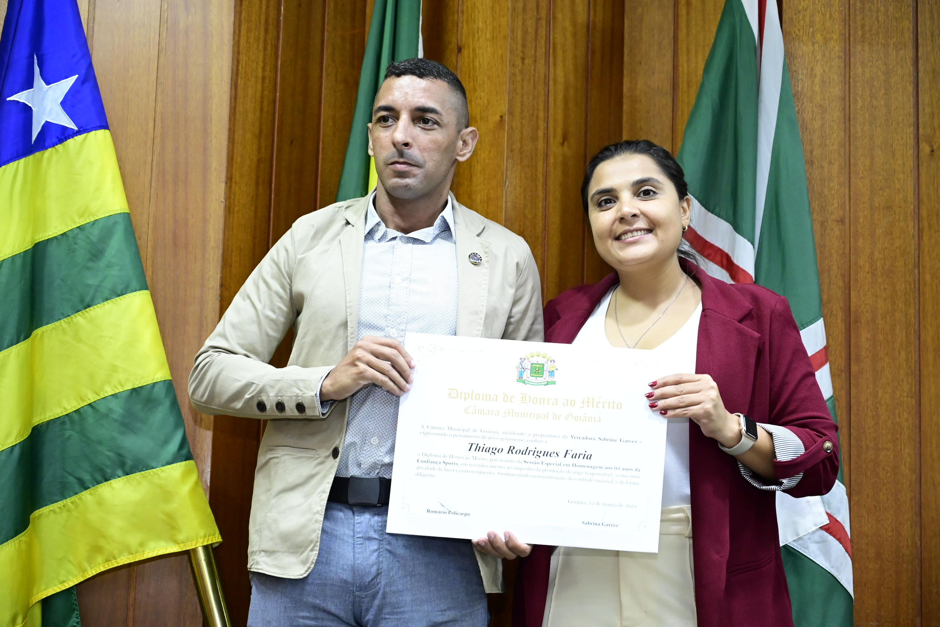 21/03/2024 - Entrega de Título de Cidadania Goianiense (Sra. Márcia Pereira de Melo e Sr. Ricardo David de Melo)