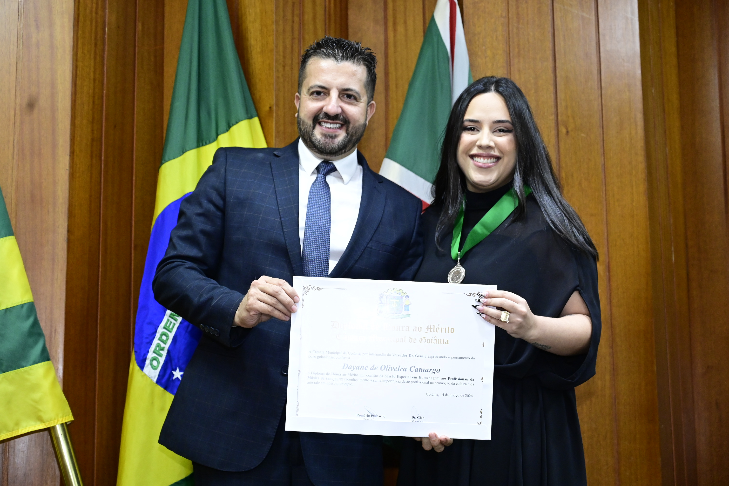 21/03/2024 - Entrega de Título de Cidadania Goianiense (Sra. Márcia Pereira de Melo e Sr. Ricardo David de Melo)