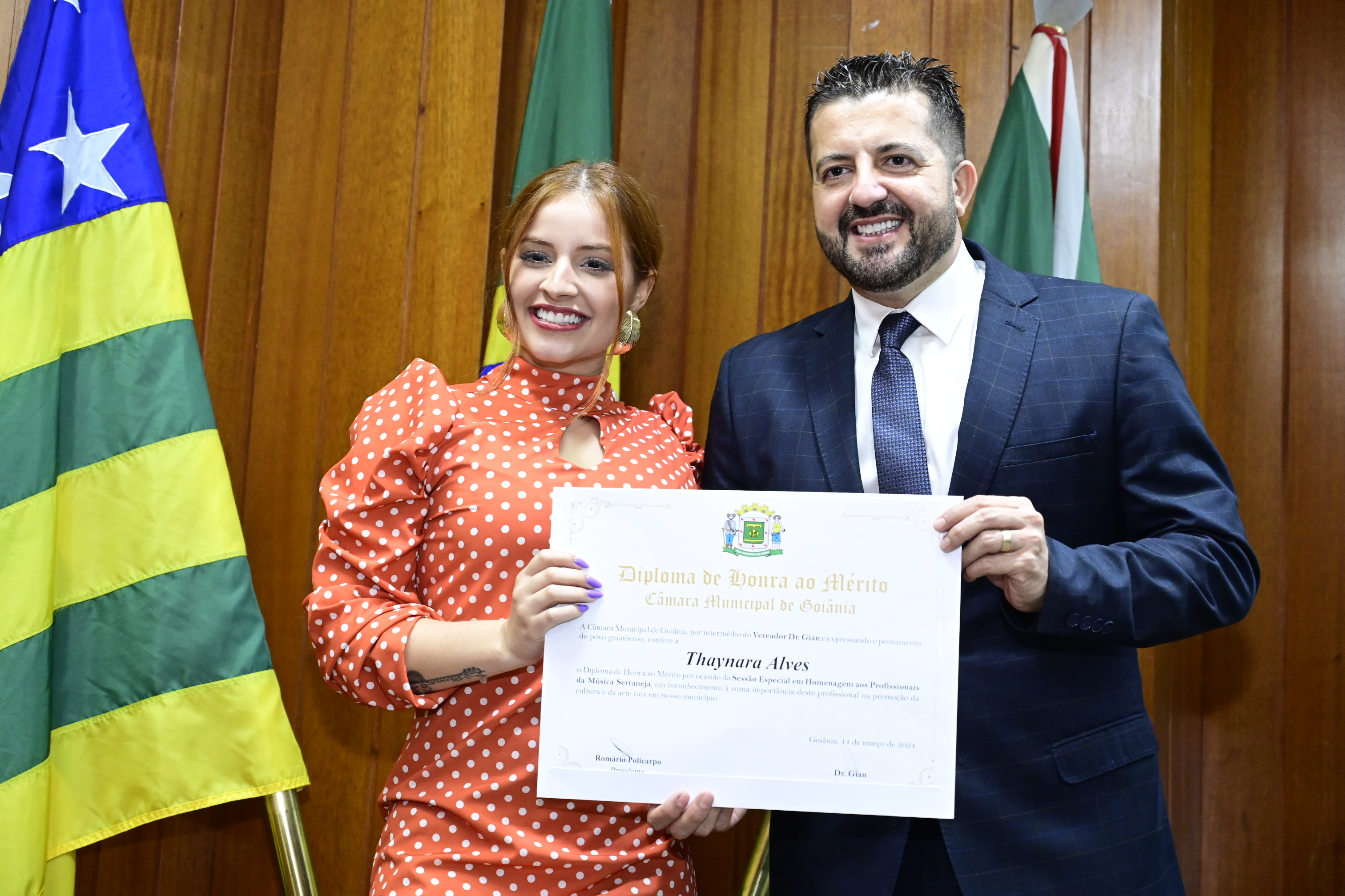 21/03/2024 - Entrega de Título de Cidadania Goianiense (Sra. Márcia Pereira de Melo e Sr. Ricardo David de Melo)