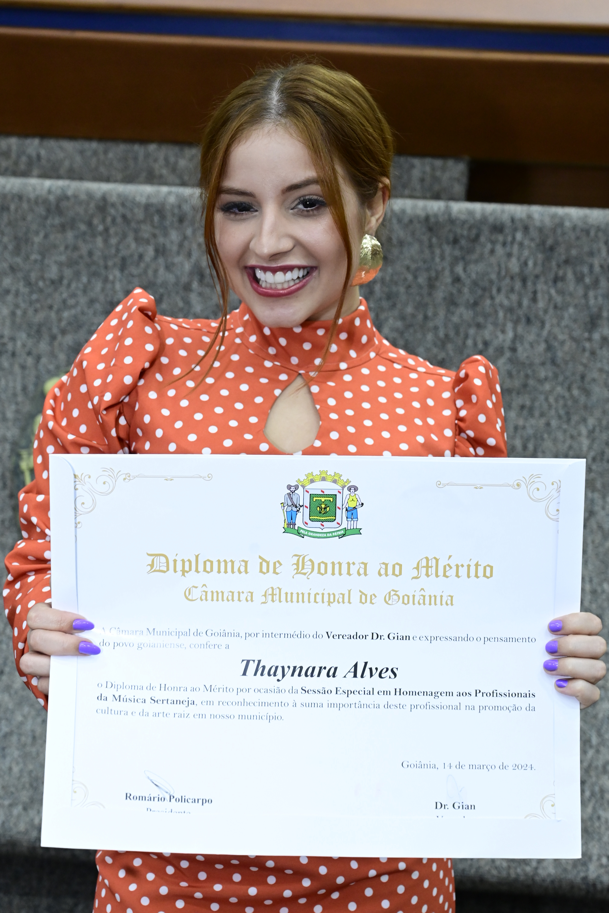 21/03/2024 - Entrega de Título de Cidadania Goianiense (Sra. Márcia Pereira de Melo e Sr. Ricardo David de Melo)