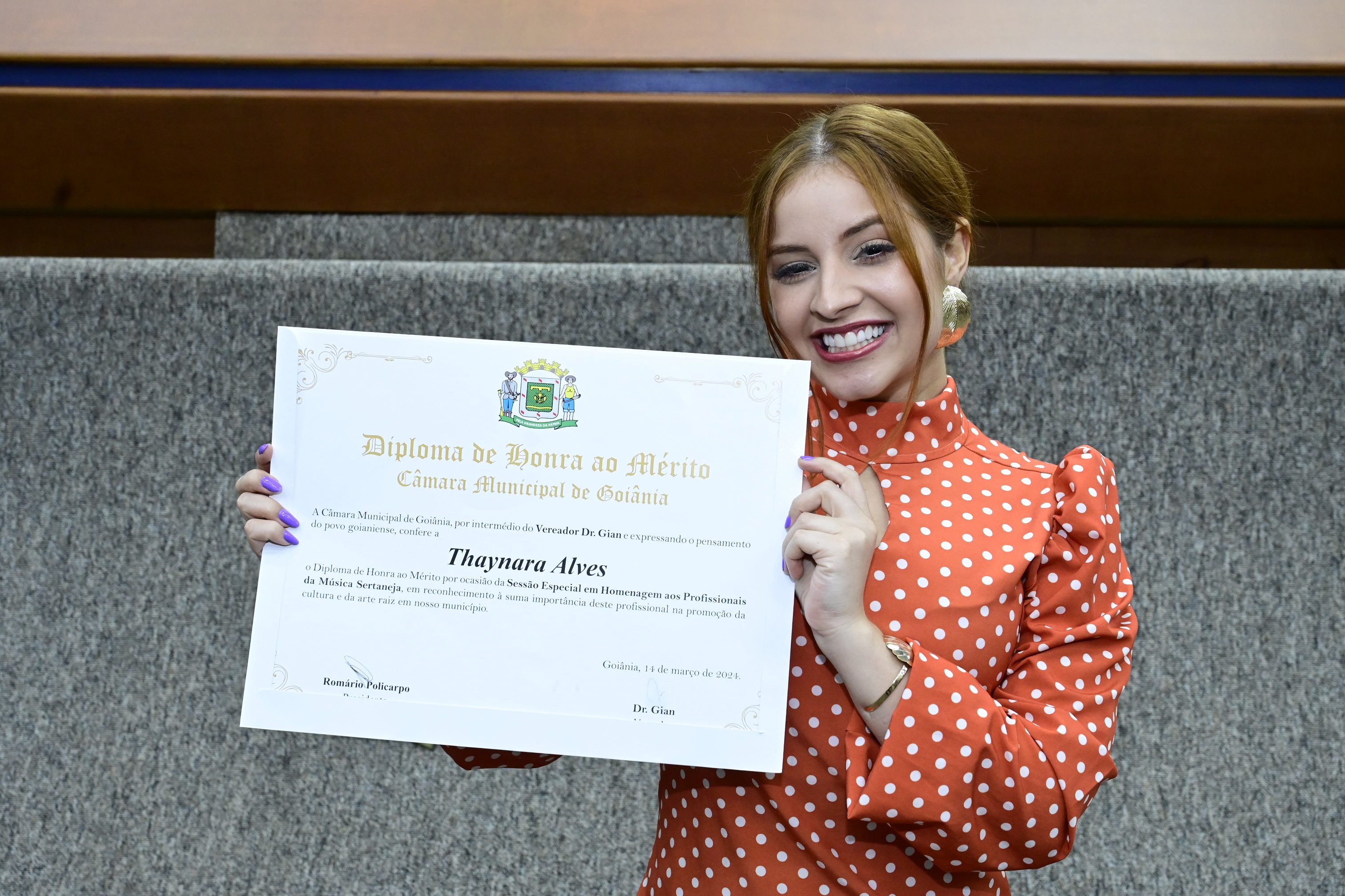 21/03/2024 - Entrega de Título de Cidadania Goianiense (Sra. Márcia Pereira de Melo e Sr. Ricardo David de Melo)