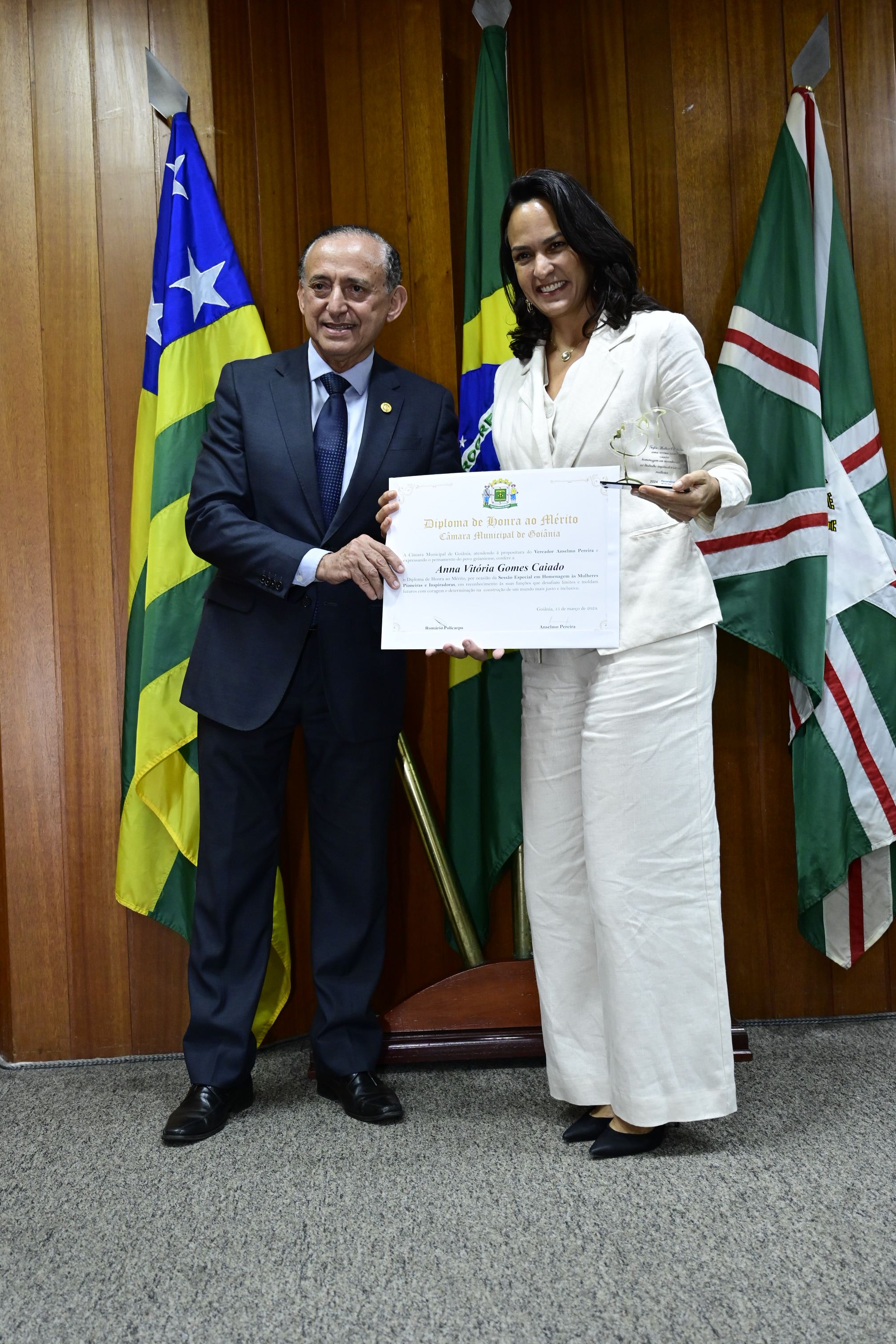 21/03/2024 - Entrega de Título de Cidadania Goianiense (Sra. Márcia Pereira de Melo e Sr. Ricardo David de Melo)