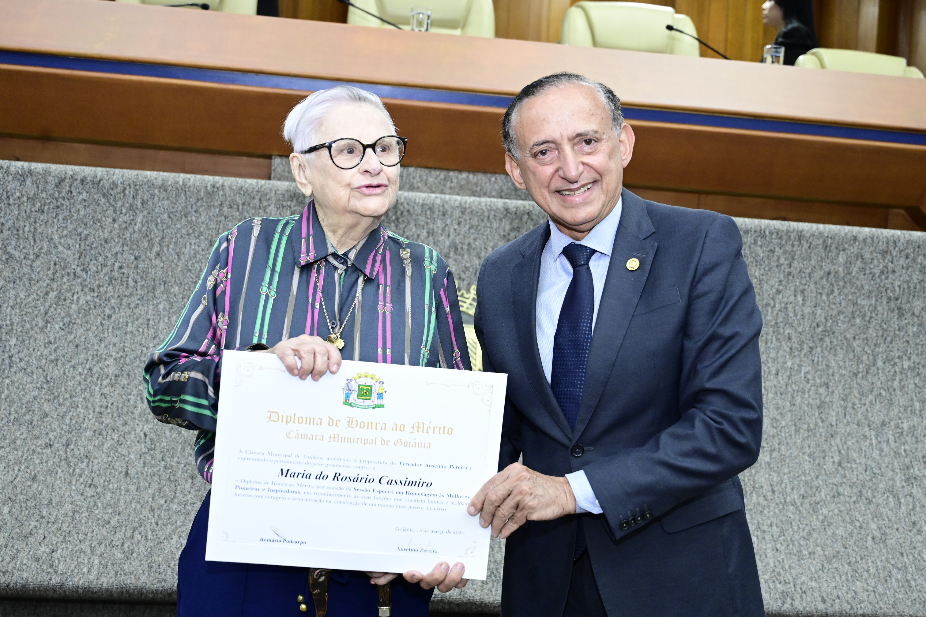 21/03/2024 - Entrega de Título de Cidadania Goianiense (Sra. Márcia Pereira de Melo e Sr. Ricardo David de Melo)