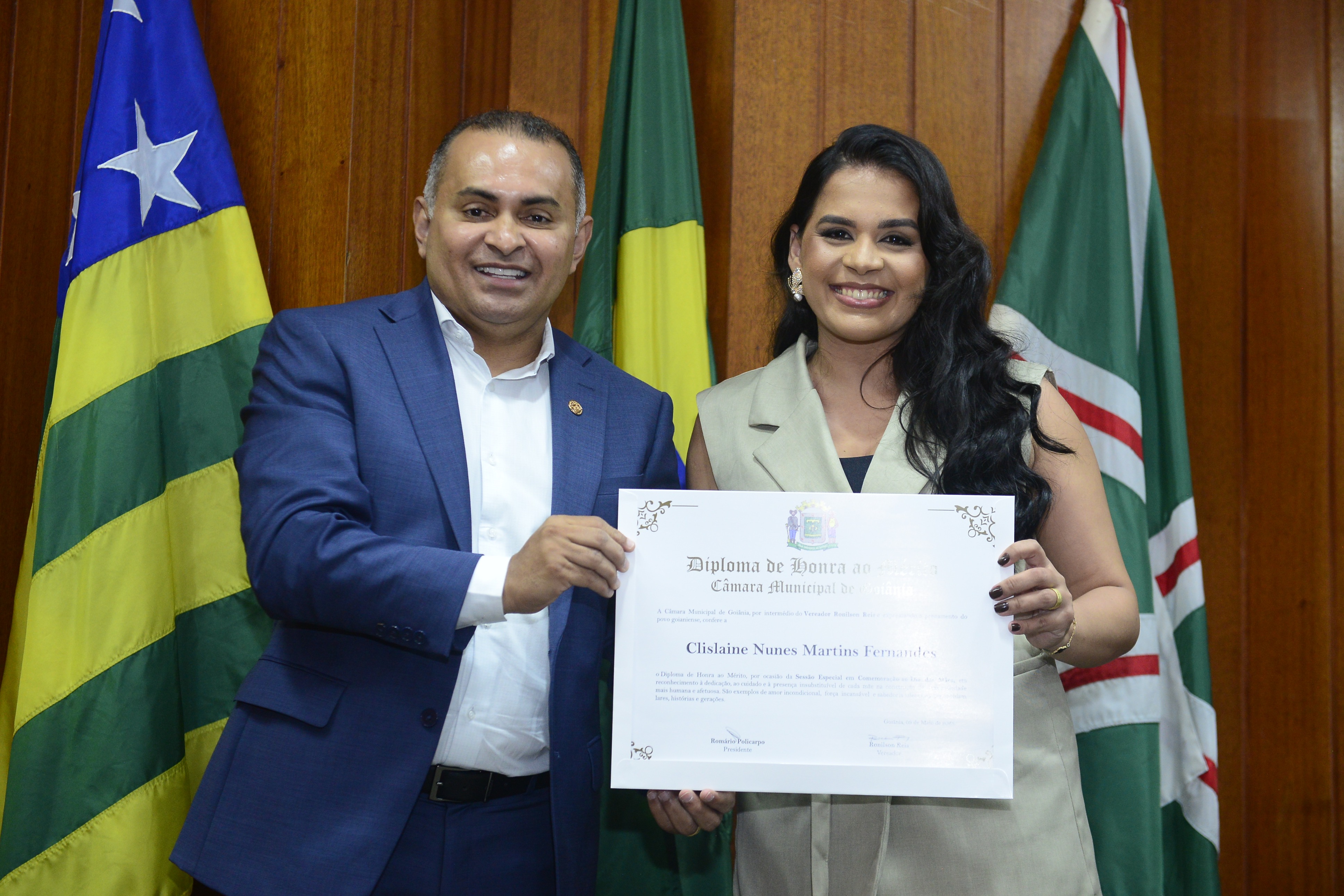 16/5/2025 - Sessão Solene: Outorga de Títulos de Cidadania Goianiense: Sra. Maria das Graças Soares Amorim; Srs. João Batista Moreira e Reynaldo Soares da Fonseca