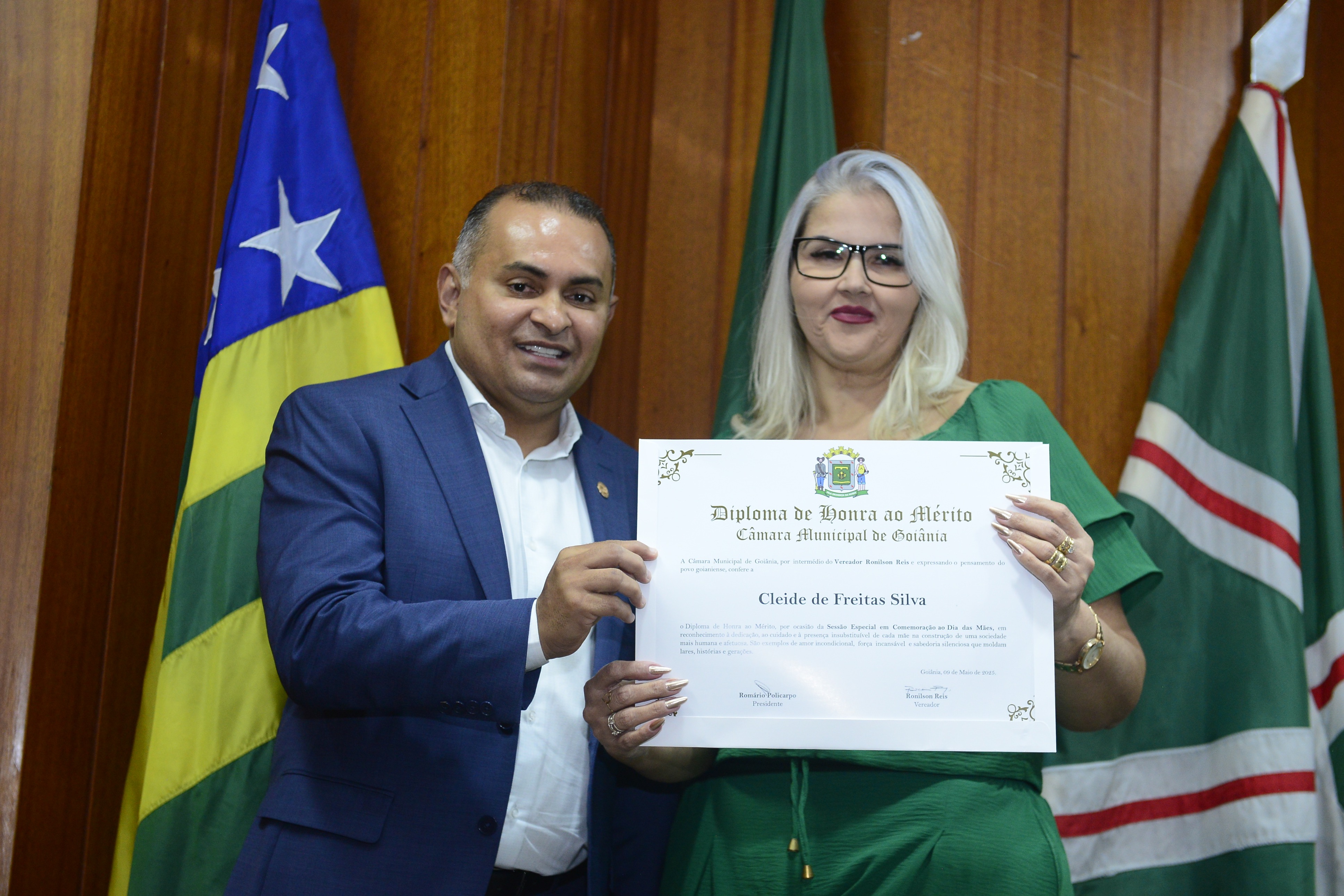 16/5/2025 - Sessão Solene: Outorga de Títulos de Cidadania Goianiense: Sra. Maria das Graças Soares Amorim; Srs. João Batista Moreira e Reynaldo Soares da Fonseca