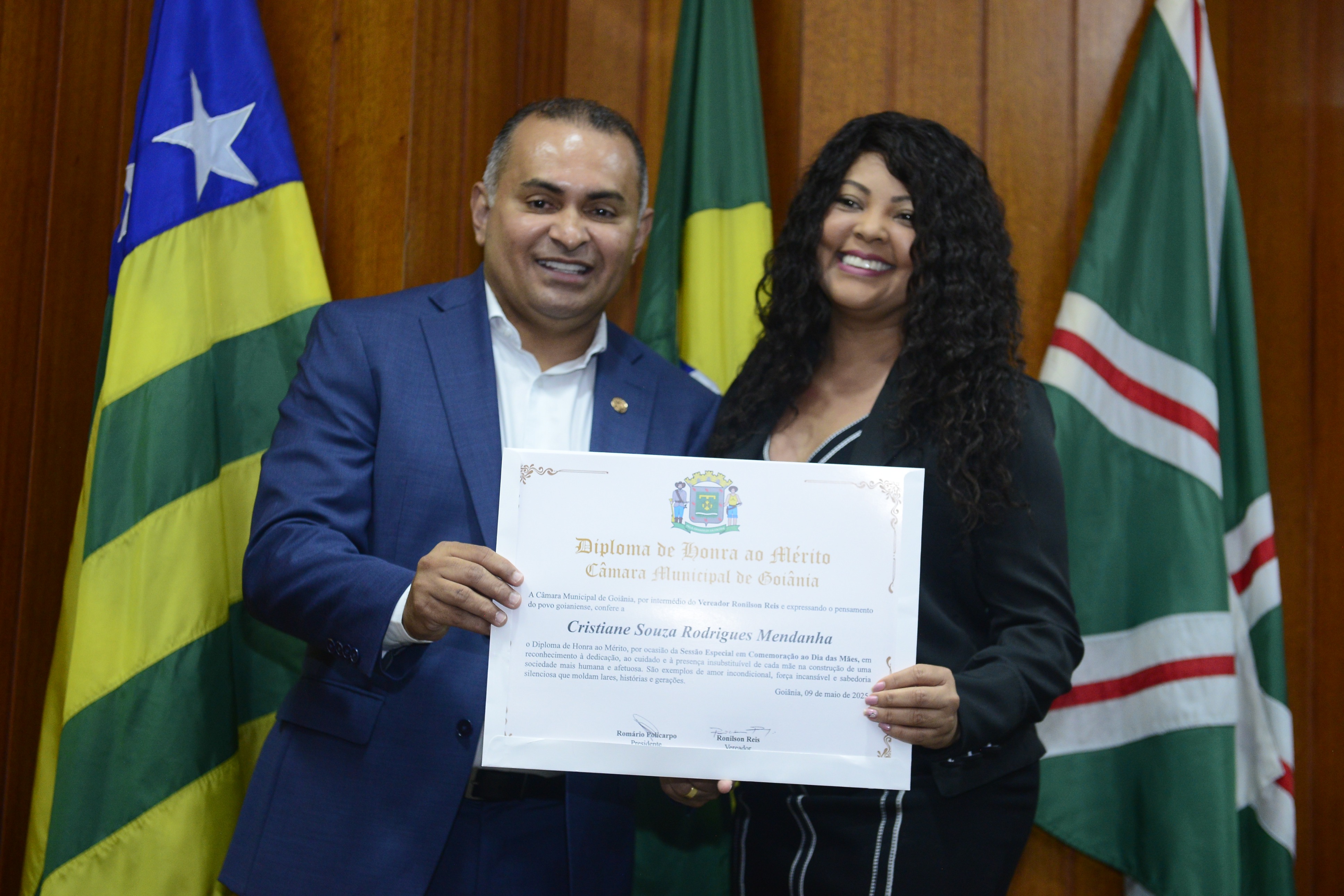 16/5/2025 - Sessão Solene: Outorga de Títulos de Cidadania Goianiense: Sra. Maria das Graças Soares Amorim; Srs. João Batista Moreira e Reynaldo Soares da Fonseca